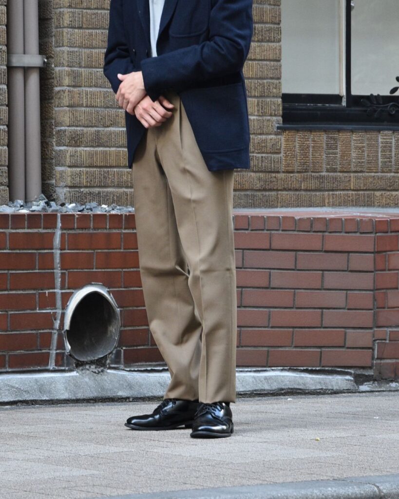 スラックスのクラシックさはありながらもどこかモダンな空気感も感じさせZABOUで扱う洋服とも相性が良いのではないかと思いセレクトさせていただきました。