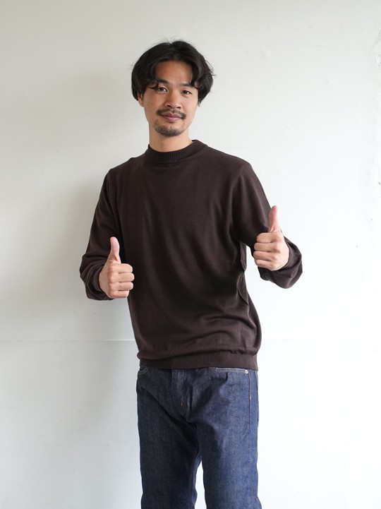 こちらはRinascenteお馴染みの沼ネック。クルーとモックネックの間のような絶妙な首の高さのアレです。