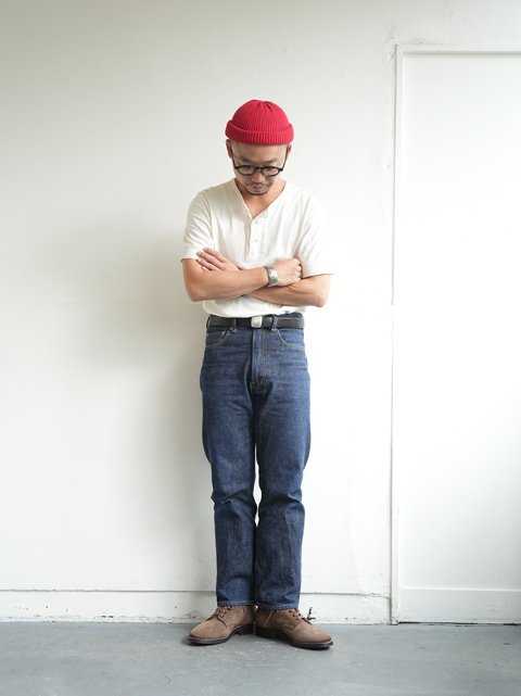 色味も絶妙で、ブルージーンズに合う事は間違いなく、ブラック系、カーキのチノにも良さそう。