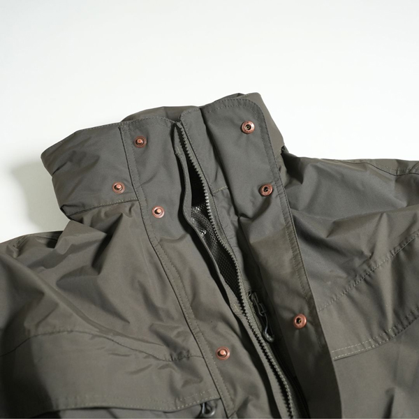 内側はこのようにメッシュとなりますので、内側の湿気は外に逃がし、雨なども当たり前のように弾きます。
