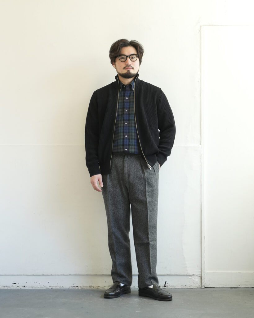 もう少し季節が進めばブルゾン感覚で起毛シャツとツイードパンツと合わせて。