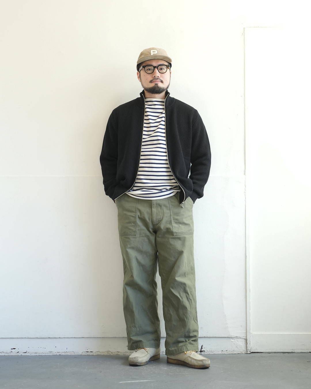 適度なゆとりがあるので、中に厚手のカットソーやシャツを着ても丁度良いバランスです。