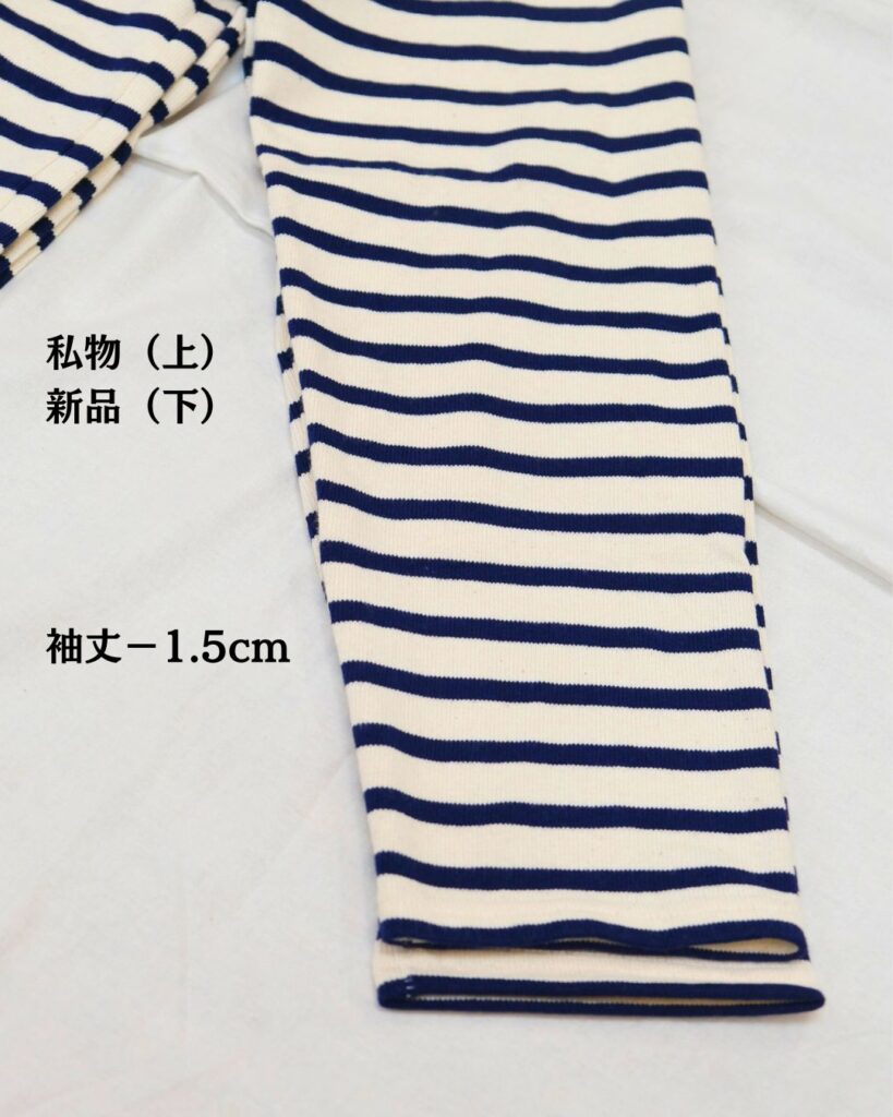 - 袖丈:洗濯によって約1.5cmほど縮み、見た目の印象も変わって9分袖くらいの丈感に。軽やかな雰囲気になりました。