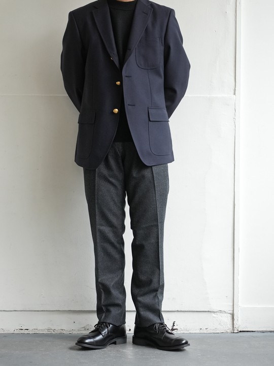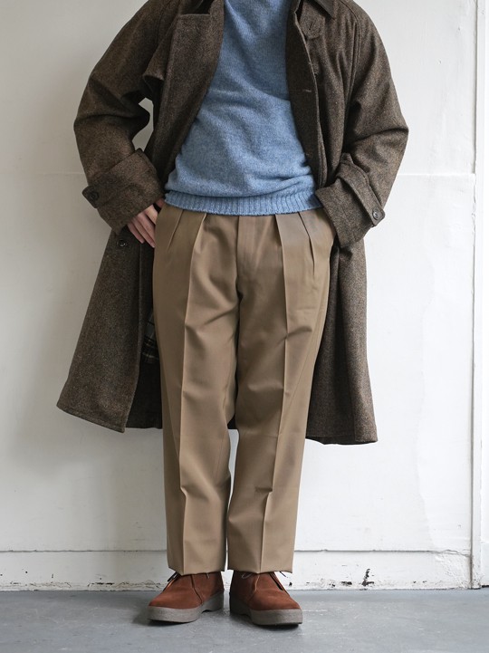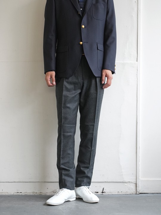 こちらもブランド定番のノータックとツータック型で、ウールサキソニー地。梳毛のフランネルは光沢が綺麗でドレッシーな印象に。