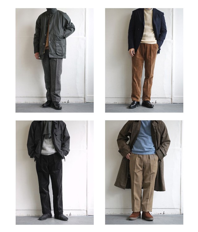 冬に穿きたい季節感が出るトラウザーズ。今年はこのようなラインナップでお待ちしております。