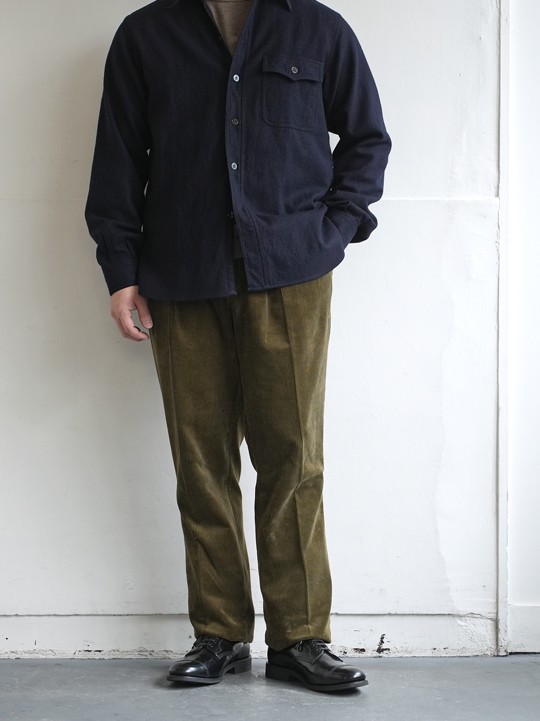 ヘビーコーデュロイの重厚感たっぷりな生地。マッカーサーよりもワイドですが整った太さで綺麗な形です。