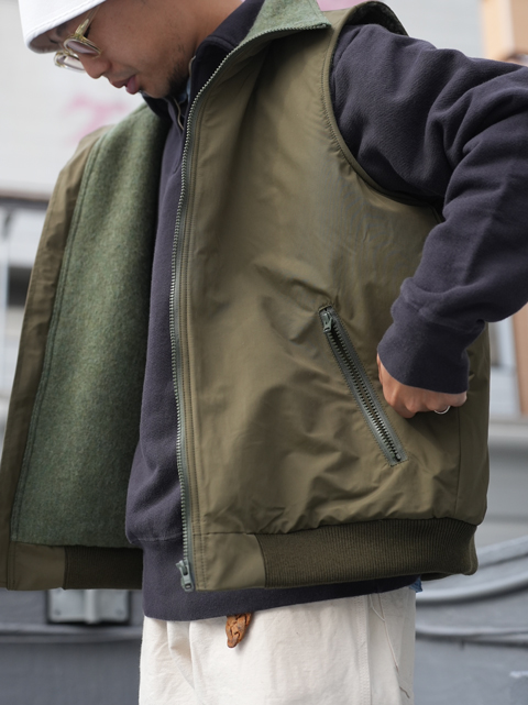 オールドアメリカンアウトドアベスト。N.O.UN(ナウン)SQUALL VEST MIL