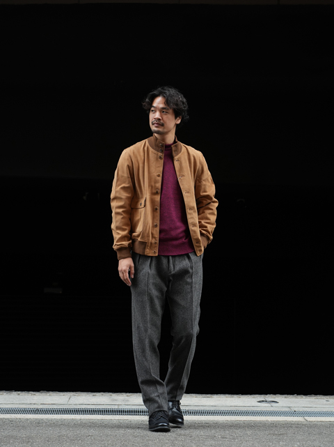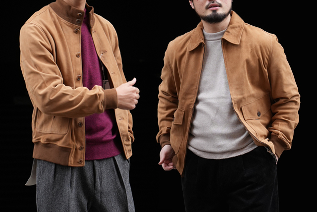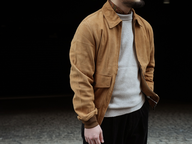 まぁそんなこと気にせず気軽に羽織るのが良い気もしますが、スウェードレザーは温かみのある素材感と、ハードにならない存在感。