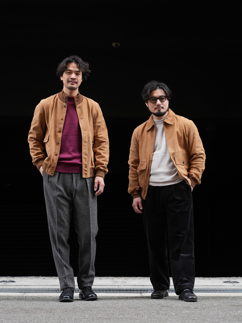 スウェードにコーデュロイ。色目は違えど若干の起毛する素材感が、コーディネートを一気に次のシーズンへと連れて行ってくれます。