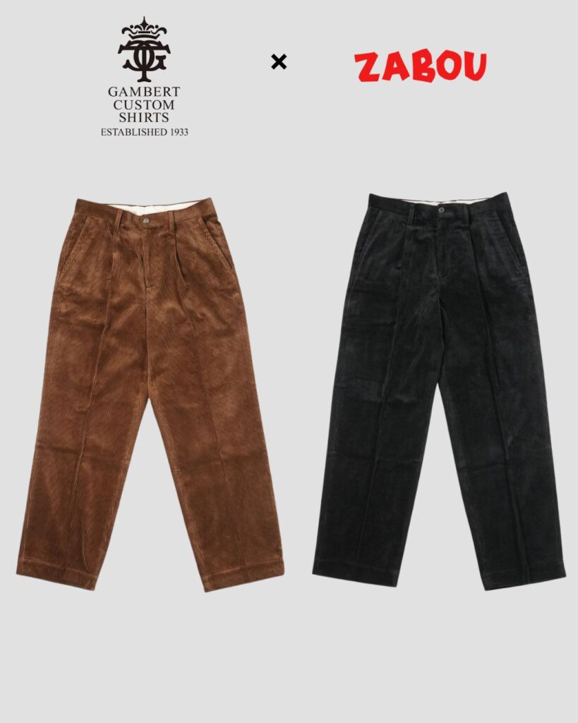 Gambert × ZABOU 別注の「1TUCK WIDE TROUSERS CORDUROY」は、