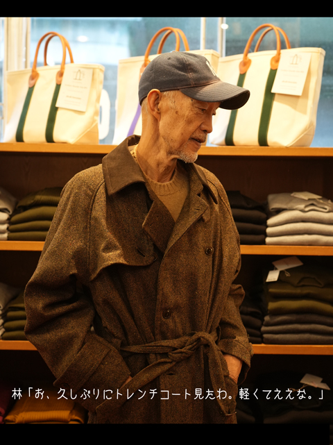 林「軍モノのパンツにツイードのトレンチ。こういう服装には大人なキャメルええと思うで。」