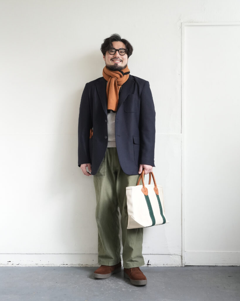 カッチリ感のあるジャケットにミリタリー要素のあるパンツを合わせるミックス感が好きなんですよね。