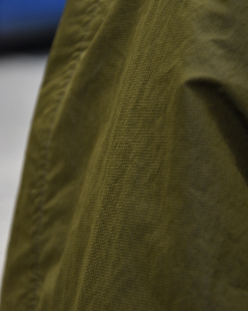 ハリとカサつきのあるW/R 塩縮ナイロンリップ素材、撥水塩縮ナイロン素材はマットなのに表情豊かで、触れていると気持ちが良いです。そしてもちろん耐水性、耐久性に優れております。