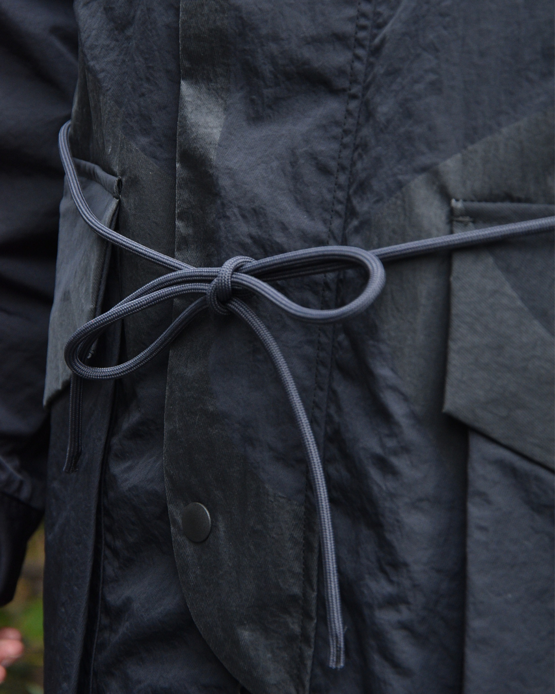 生地と同色のプリントによって補強された箇所が特に表情豊かで、一枚着るだけで説得力が出る、そんな印象を受けます。