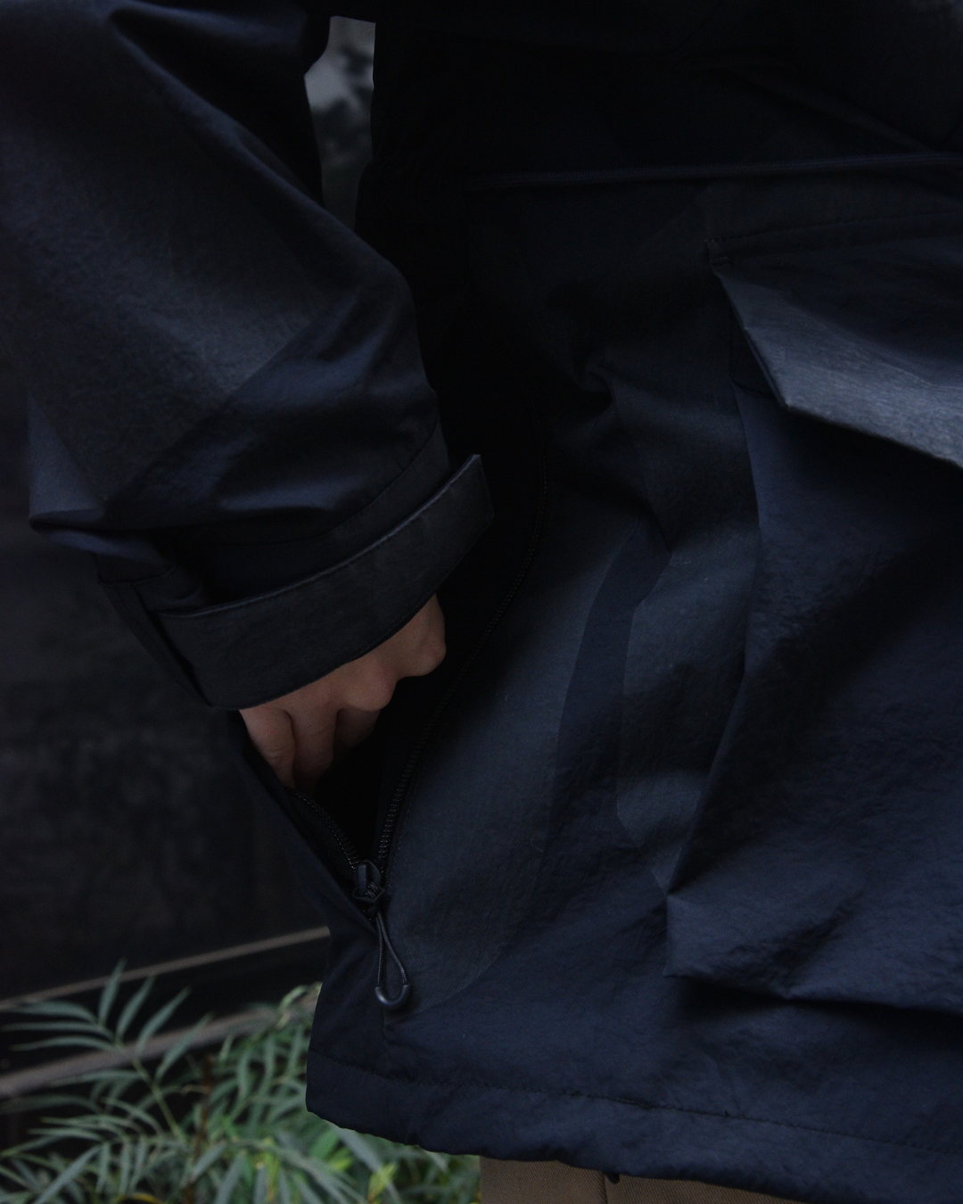 素材は撥水性と強度に優れたW/R 塩縮ナイロンリップ素材。機能性もですが、生地の表情も良いのが魅力です。