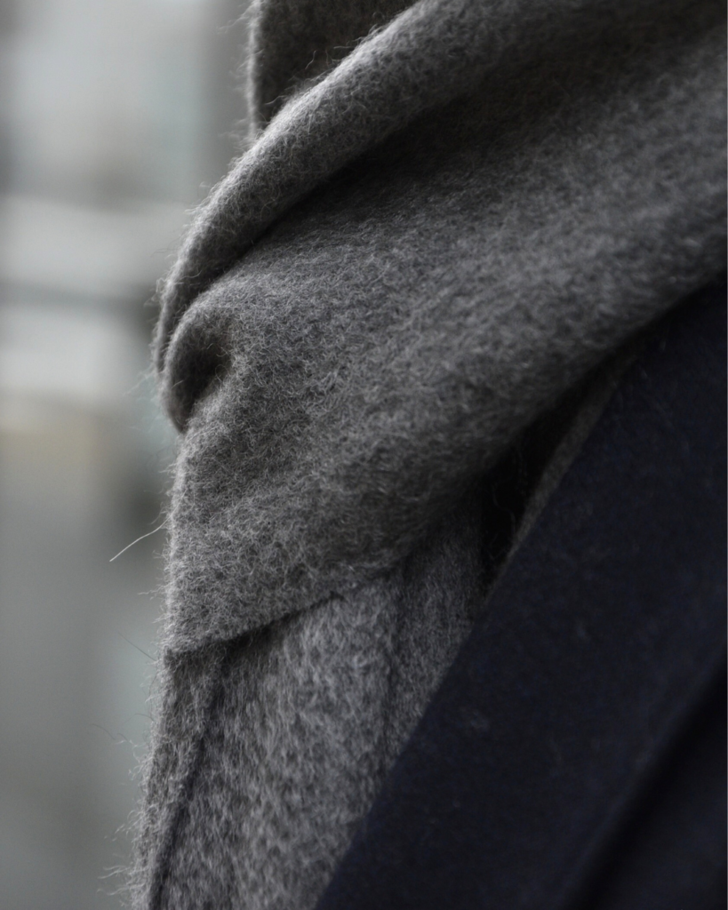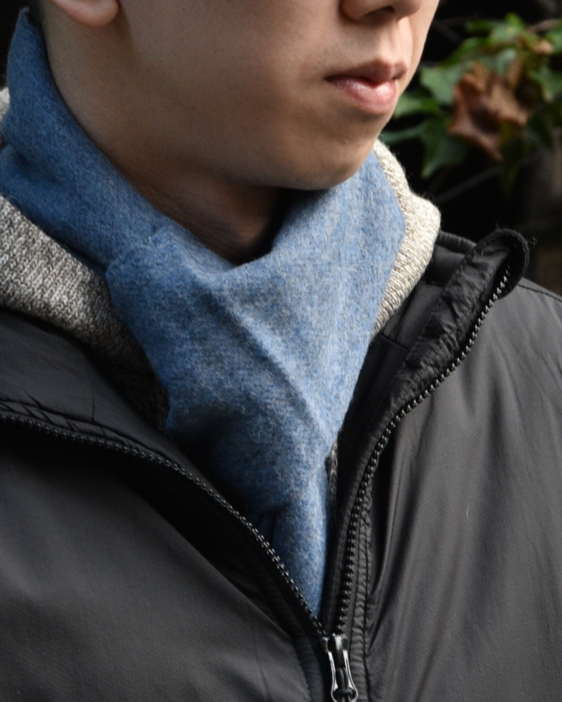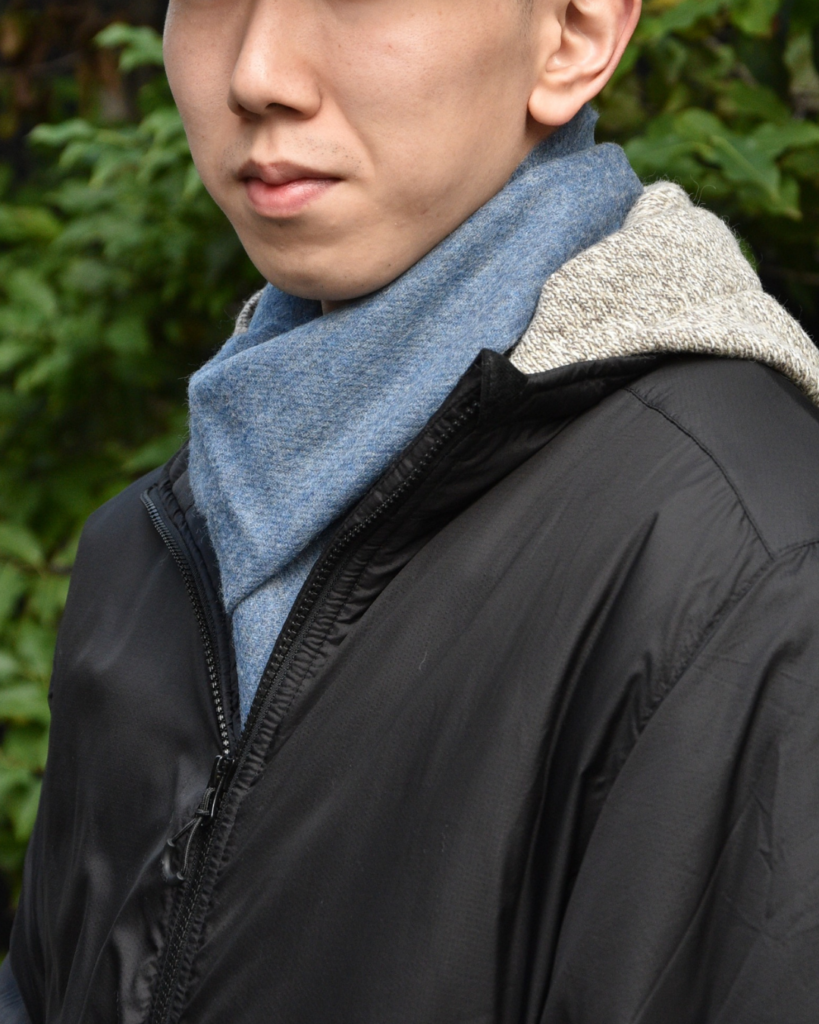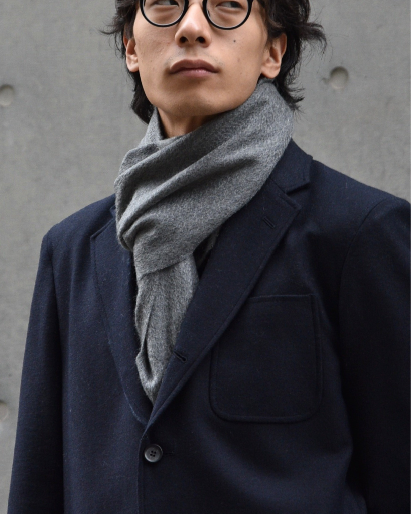 マフラーとしてはやや幅広(31cm)につき、巻いた時にしっかりボリューム感を出せるのもニクいところ。