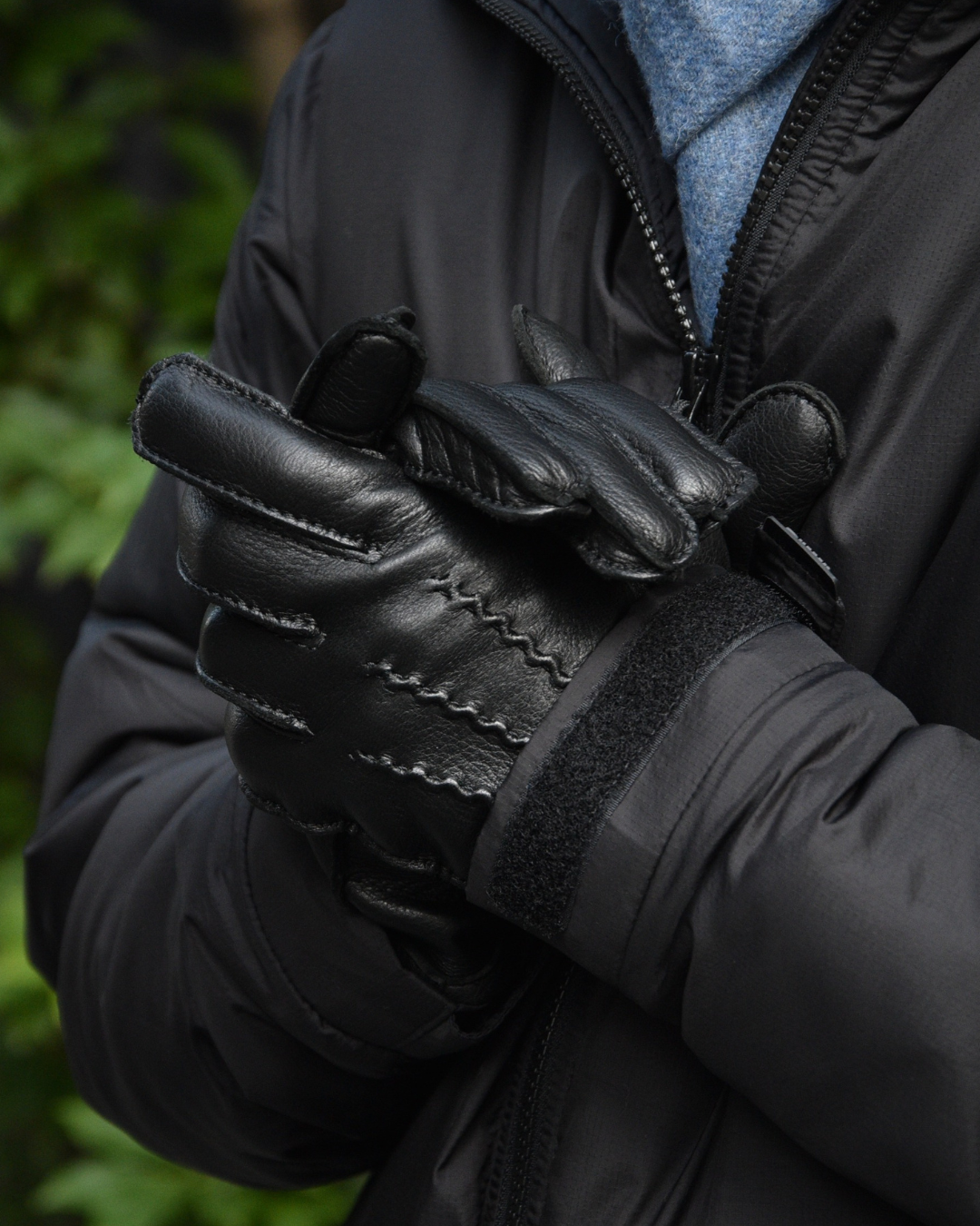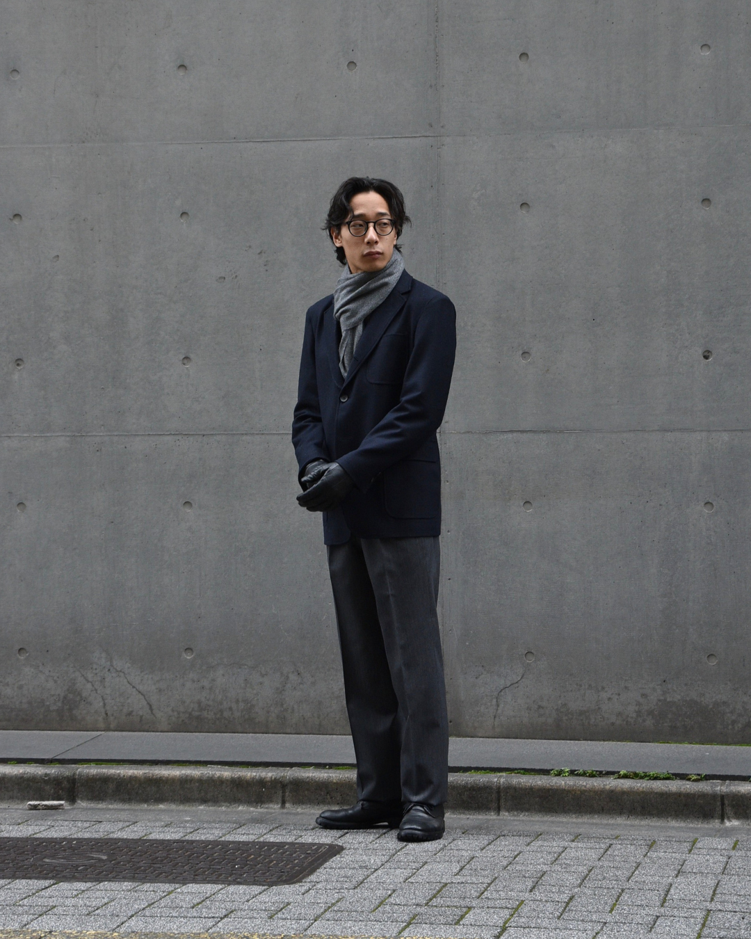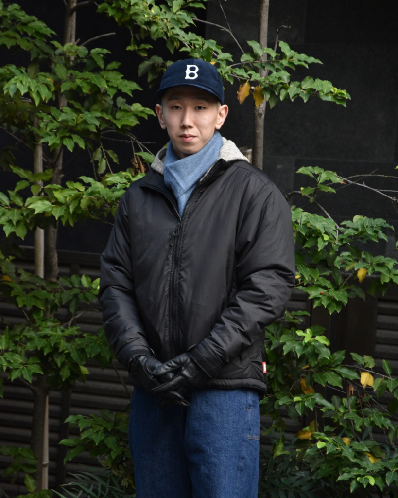 STYLE2でご覧いただきましたように、トラッドと相性抜群なのがマフラーと革手袋ですが、テック系のアウターと合わせてコントラストをお楽しみいただくのも一興。