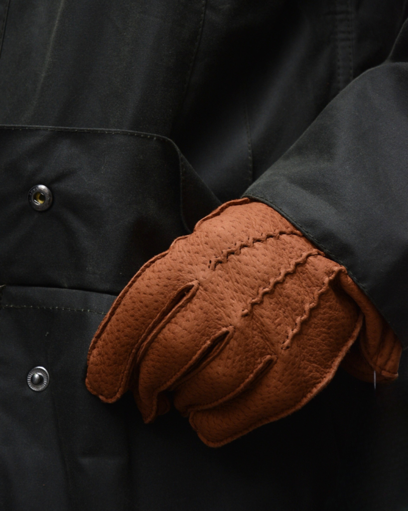 革手袋は革によってつけ心地が大きく変わりますが、手袋用として最も重宝されるのがペッカリー革。