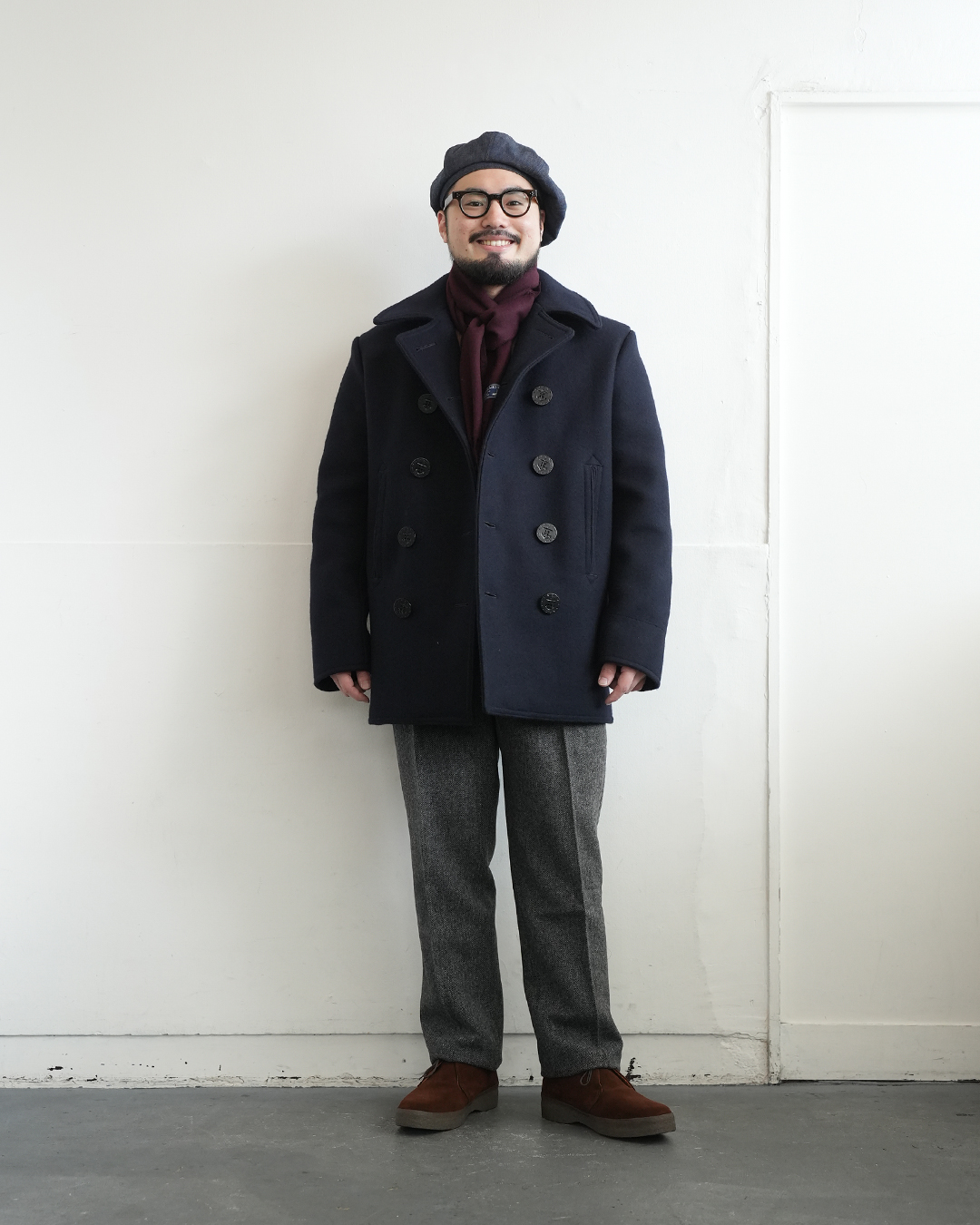 Pコートを羽織ってトラッドに。
