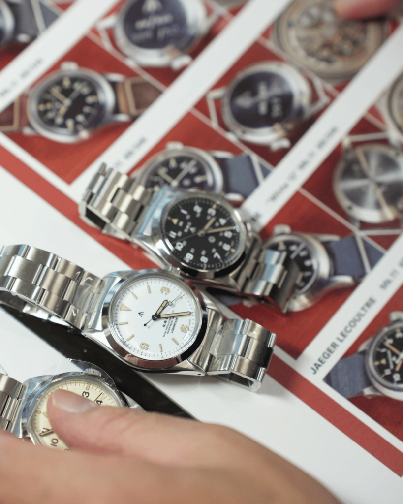 ナバルウォッチの時計づくりは、まずミリタリーの資料や昔のアーカイブを丁寧に読み解くところから始まる。