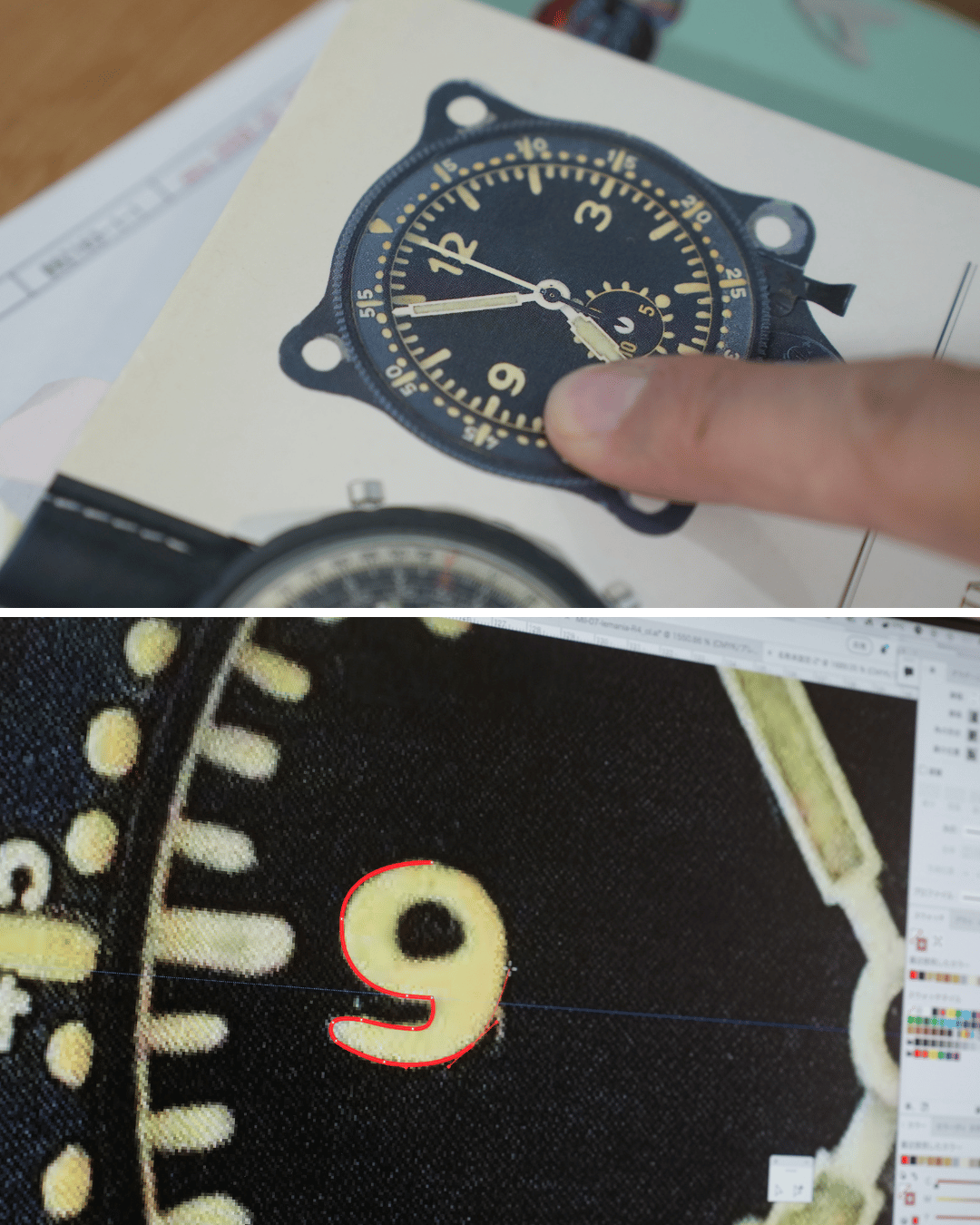 文字盤は イラストレーター を使ってゼロから描き起こすのだが、その工程は驚くほどアナログで地道。ケースサイズやベルトの仕様も、この段階で少しずつ形にしていく。