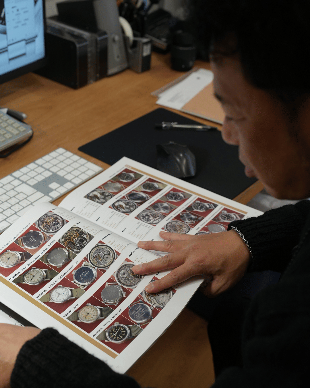 ナバルウォッチの時計づくりは、まずミリタリーの資料や昔のアーカイブを丁寧に読み解くところから始まる。