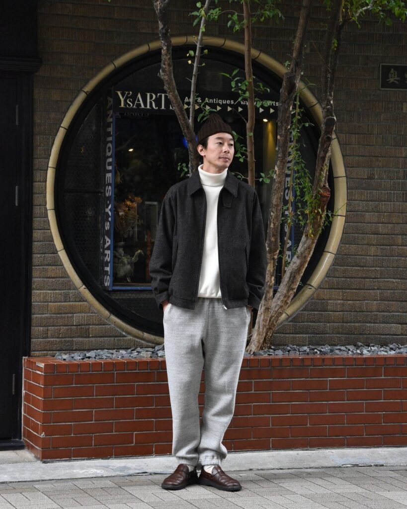 スウェットパンツに合わせても、生地とサイズバランスのおかげかほどよく大人びた空気になるかと。