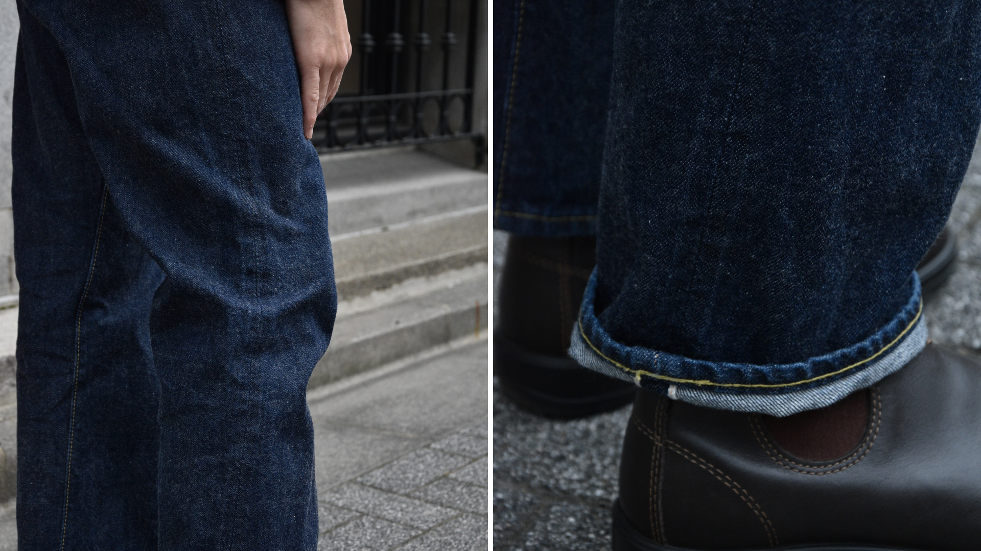 あとブーツがスッポリ収まる裾幅は秋冬で特に使いやすく感じます。次の夏までにはもっと薄くして、違う雰囲気のコーデをしてみたいです。