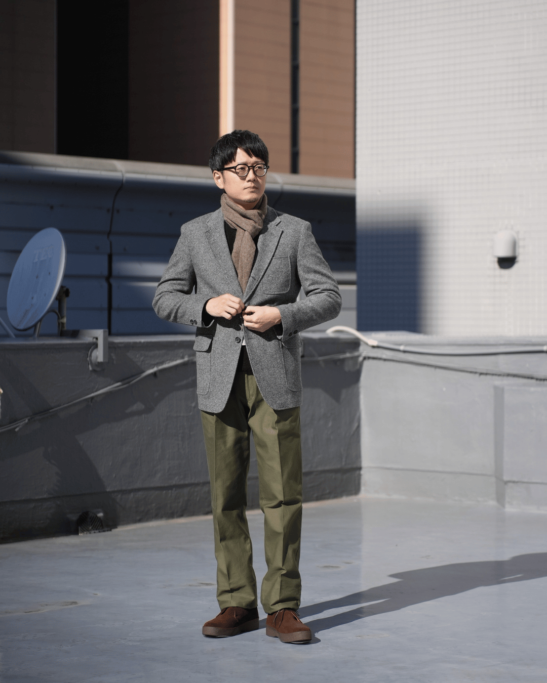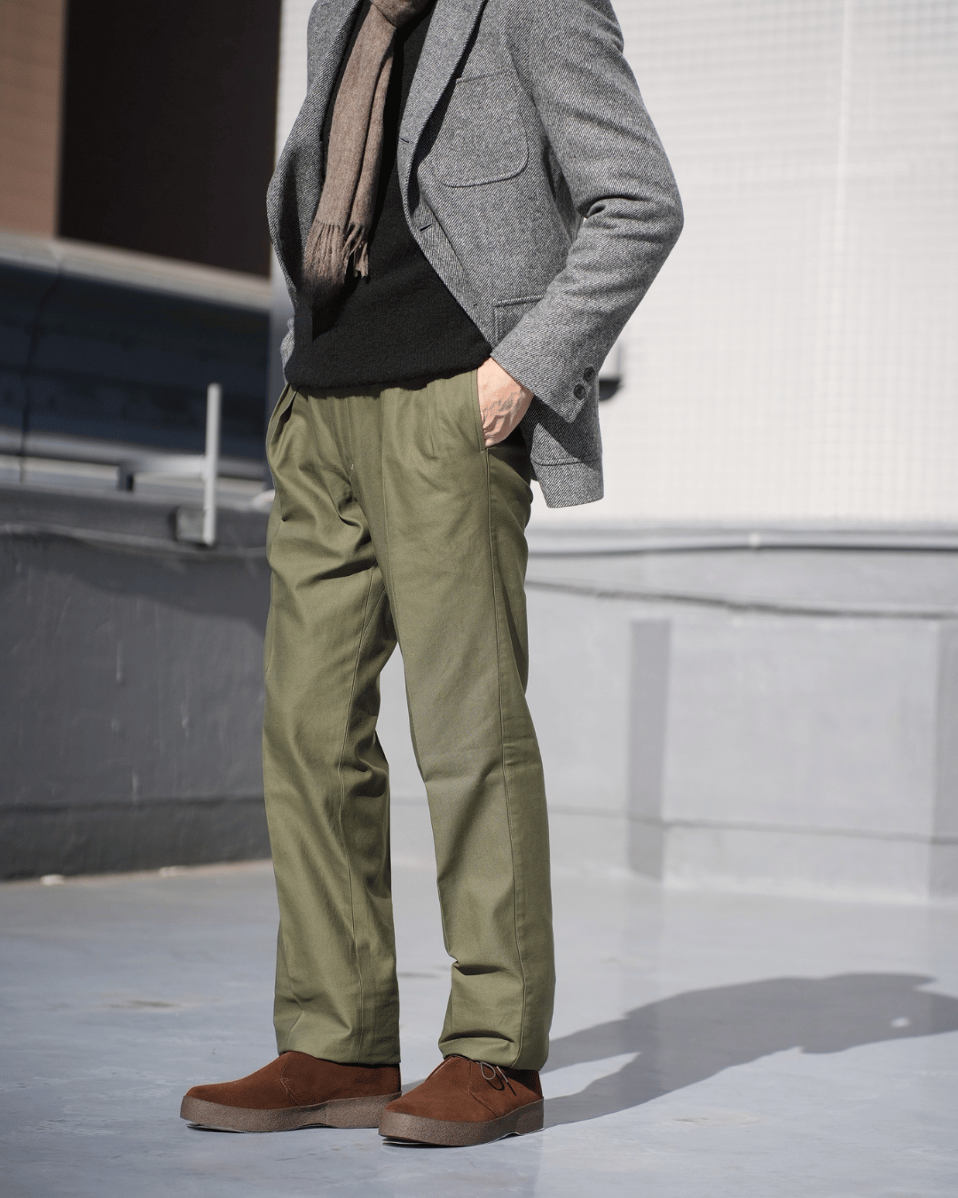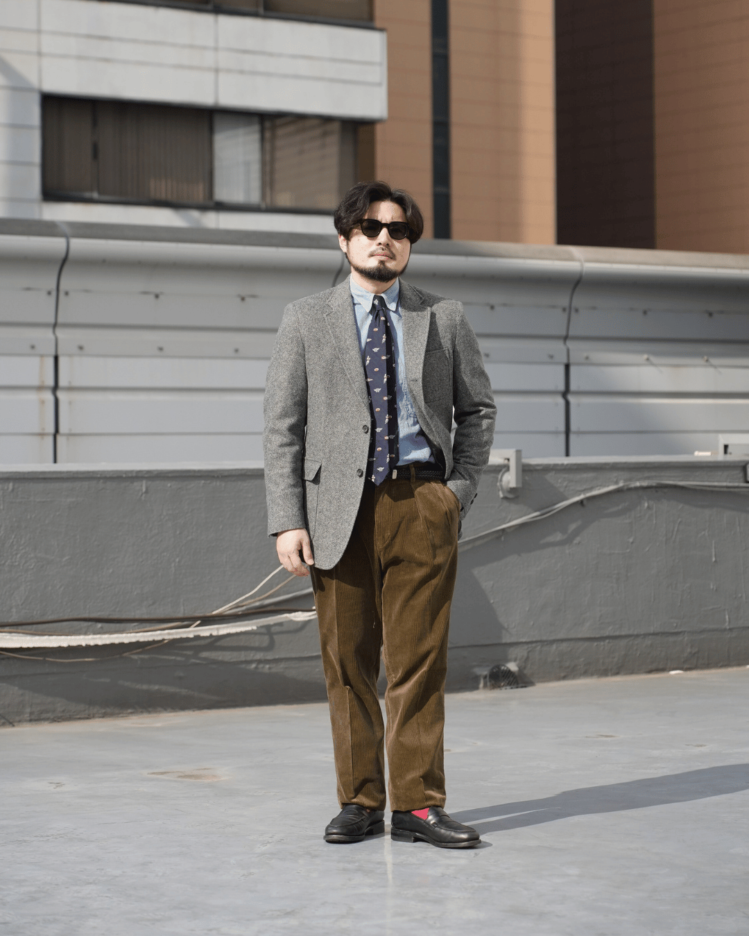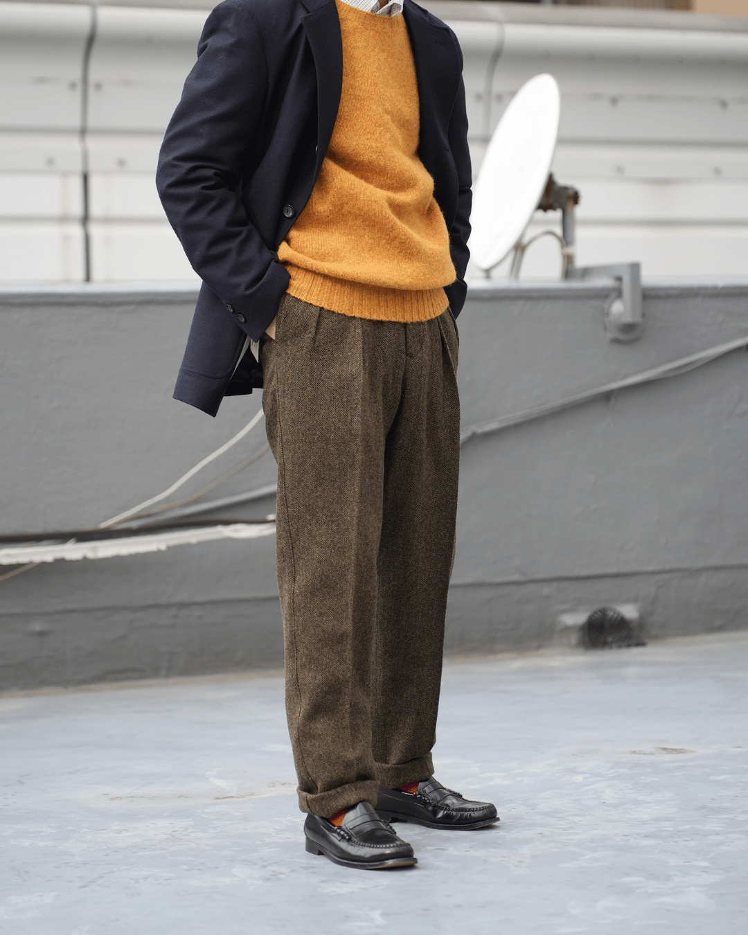 撮り終えてみると、全体的にトラッドな印象に仕上がりました。ジャケットを普段着として楽しむコーディネートとしては結構リアリティのあるスタイルを見せれたのではないかなと思います。