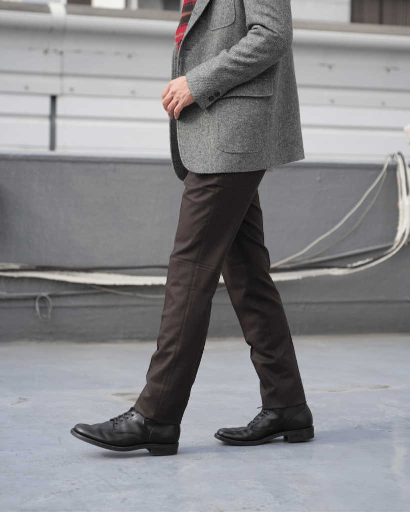 スラックスの仕立てでカジュアルパンツを作るブランドなので、このジャケットを合わせるのにこれ以上最適なブランドはないだろう!