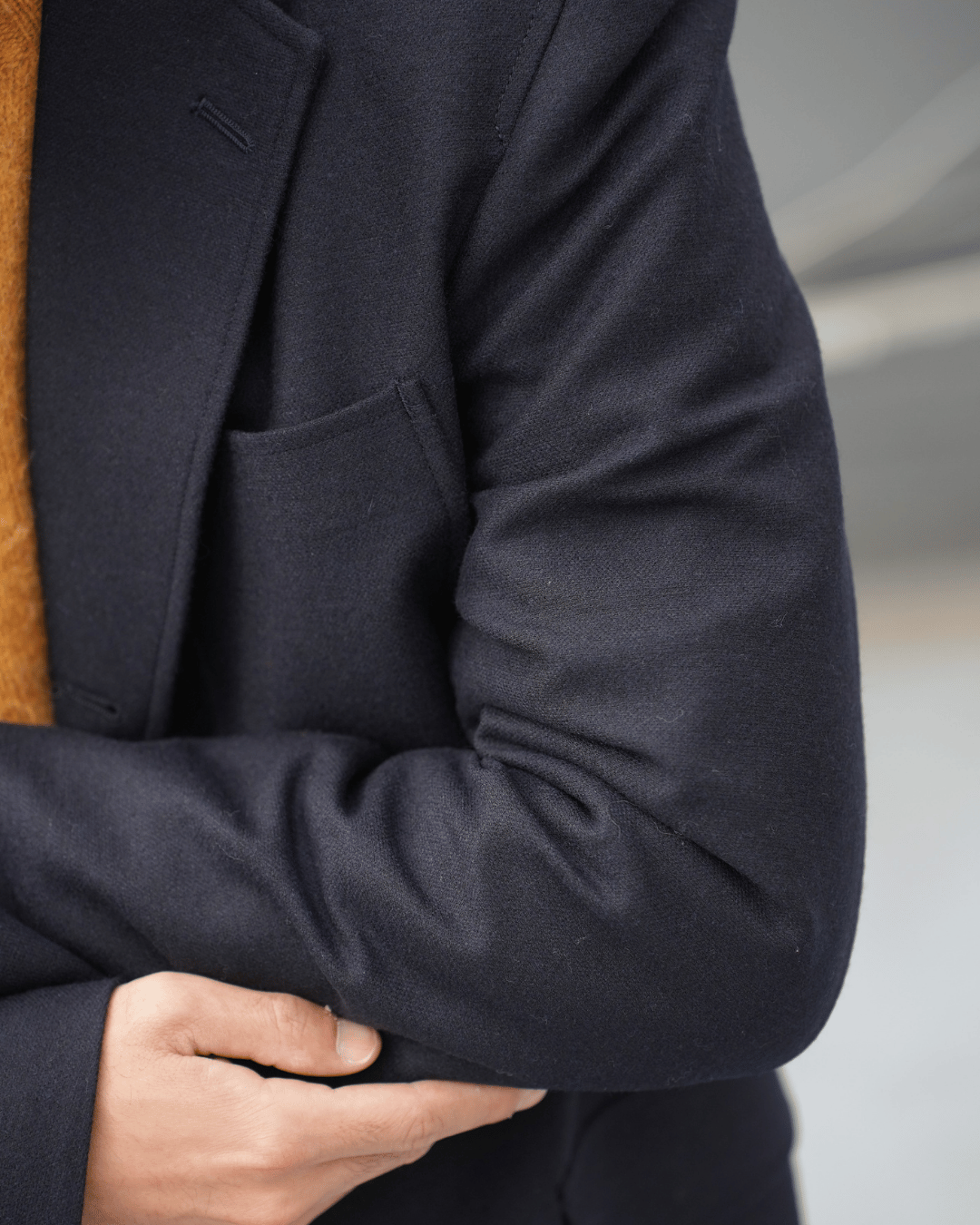 アイビーファッションの最も著名で代表的なブレザーの型を元にした本格的なテーラードジャケットですが、フォーマルな雰囲気ではなく、あくまでカジュアルにジャケットを楽しんで頂きたい思いから程よく暖かみが感じられるグレーとネイビーの国産ツイードをチョイス致しました。