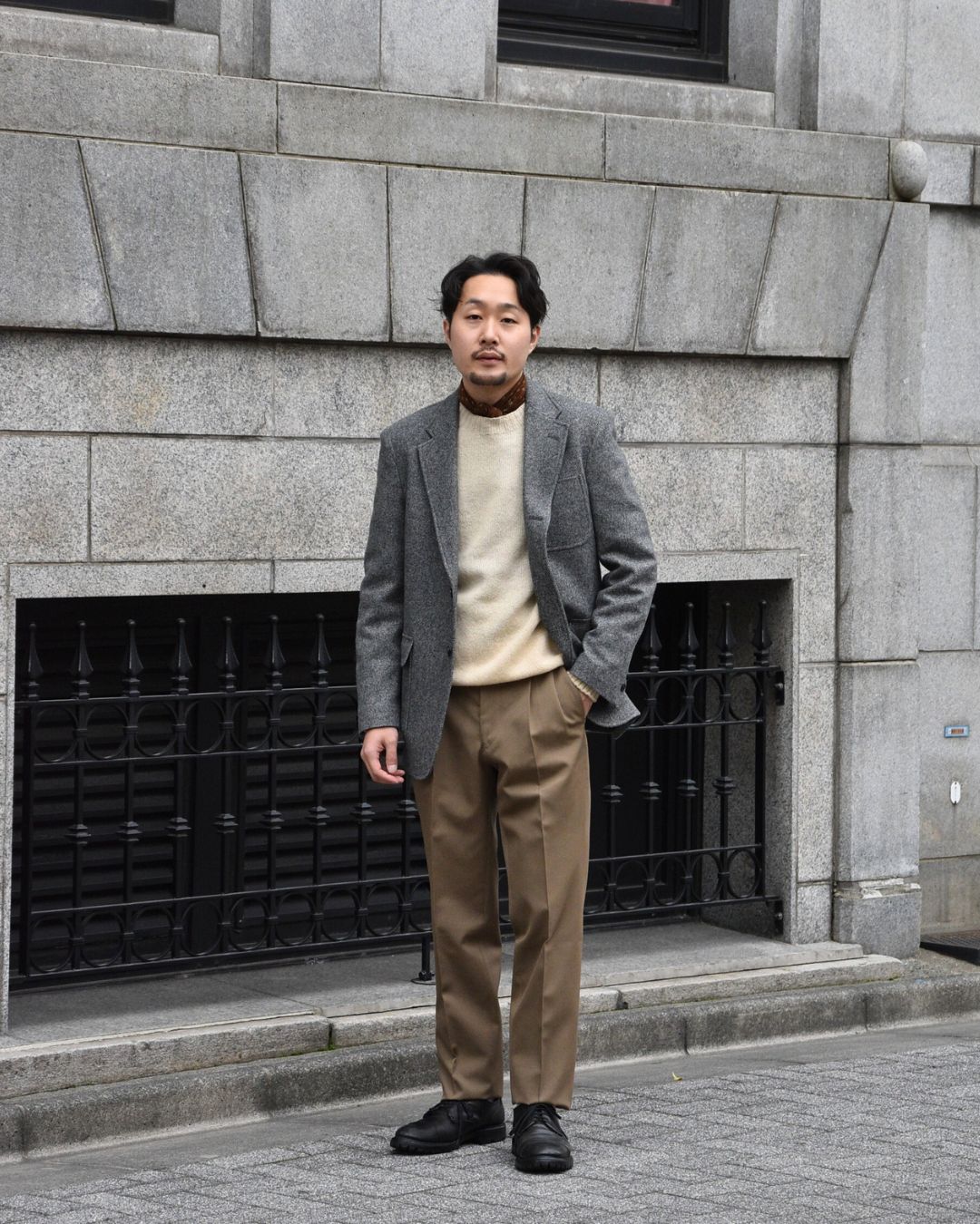 アウトプリーツテーパードスラックス×ツイードブレザー