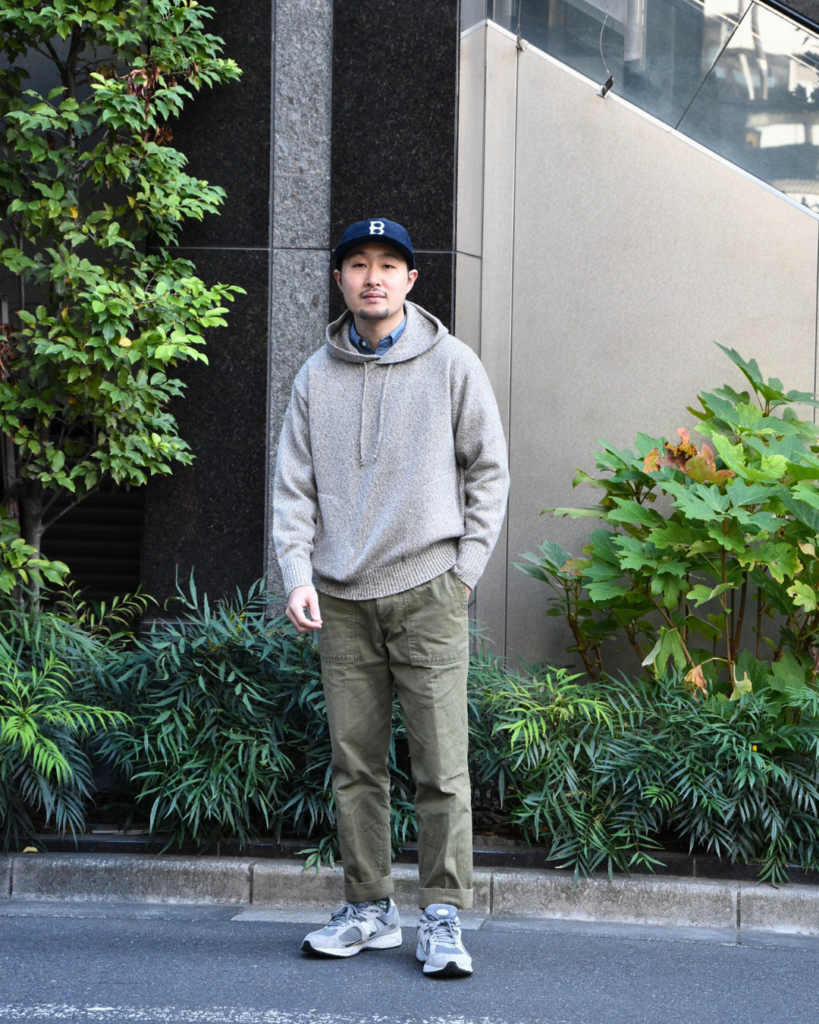 今年はニットパーカーが気になるところ。カジュアルなデザインながらニットになることで程よく品があるので、バランスがドレスファティーグに近いと思いますので相性もバッチリだと思います。』