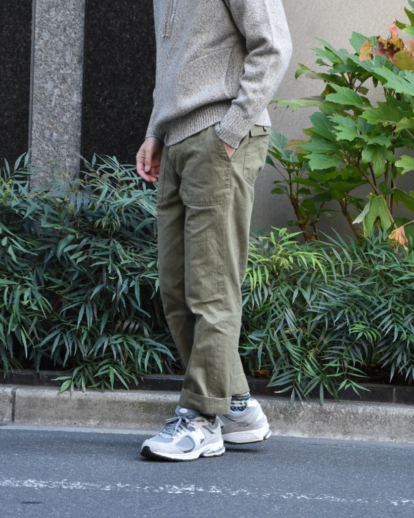 いつもの軍パンからドレスファティーグに穿き替えて、カジュアルアップ。