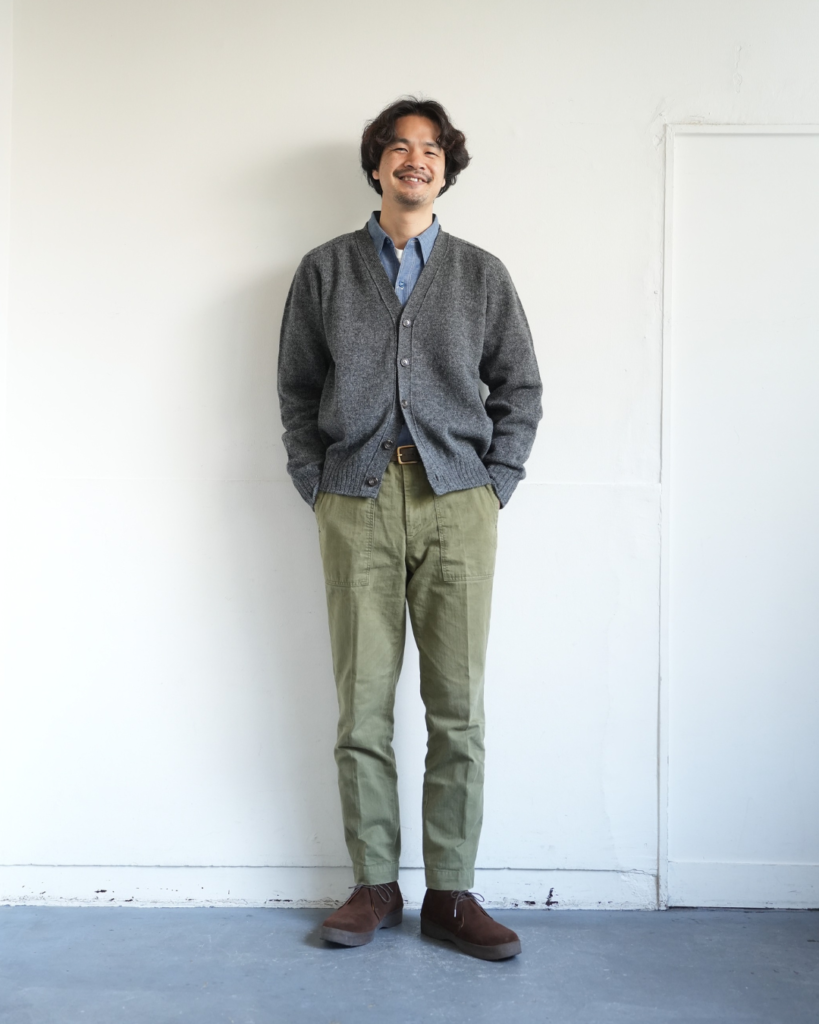 スラックス仕立ての軍パンというのは分かりやすく、でも他にはない。真似できない。から良いんでしょう。