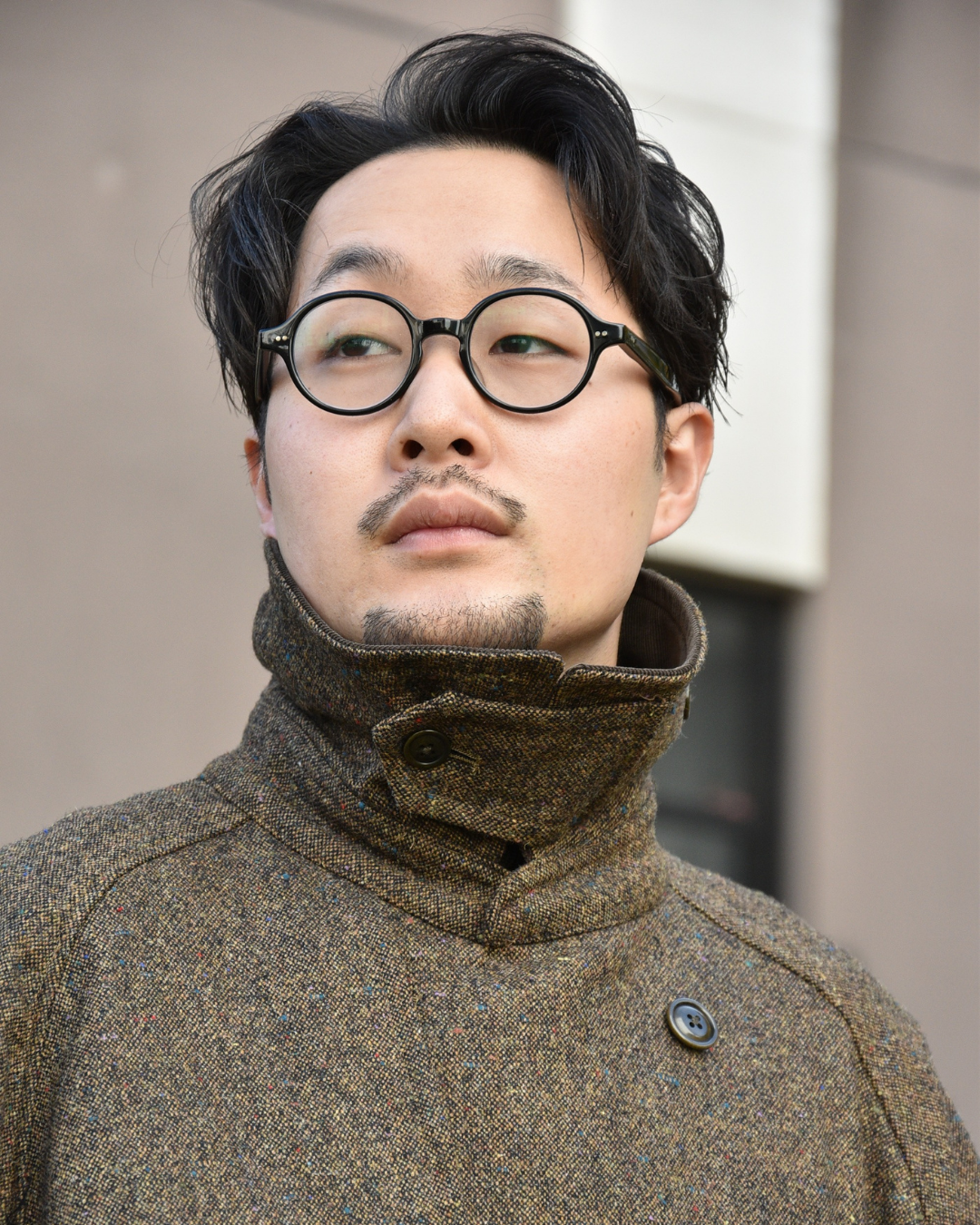 タートルのニットにコーデュロイのトラウザー。そして歩く時に纏うツイードのコート。