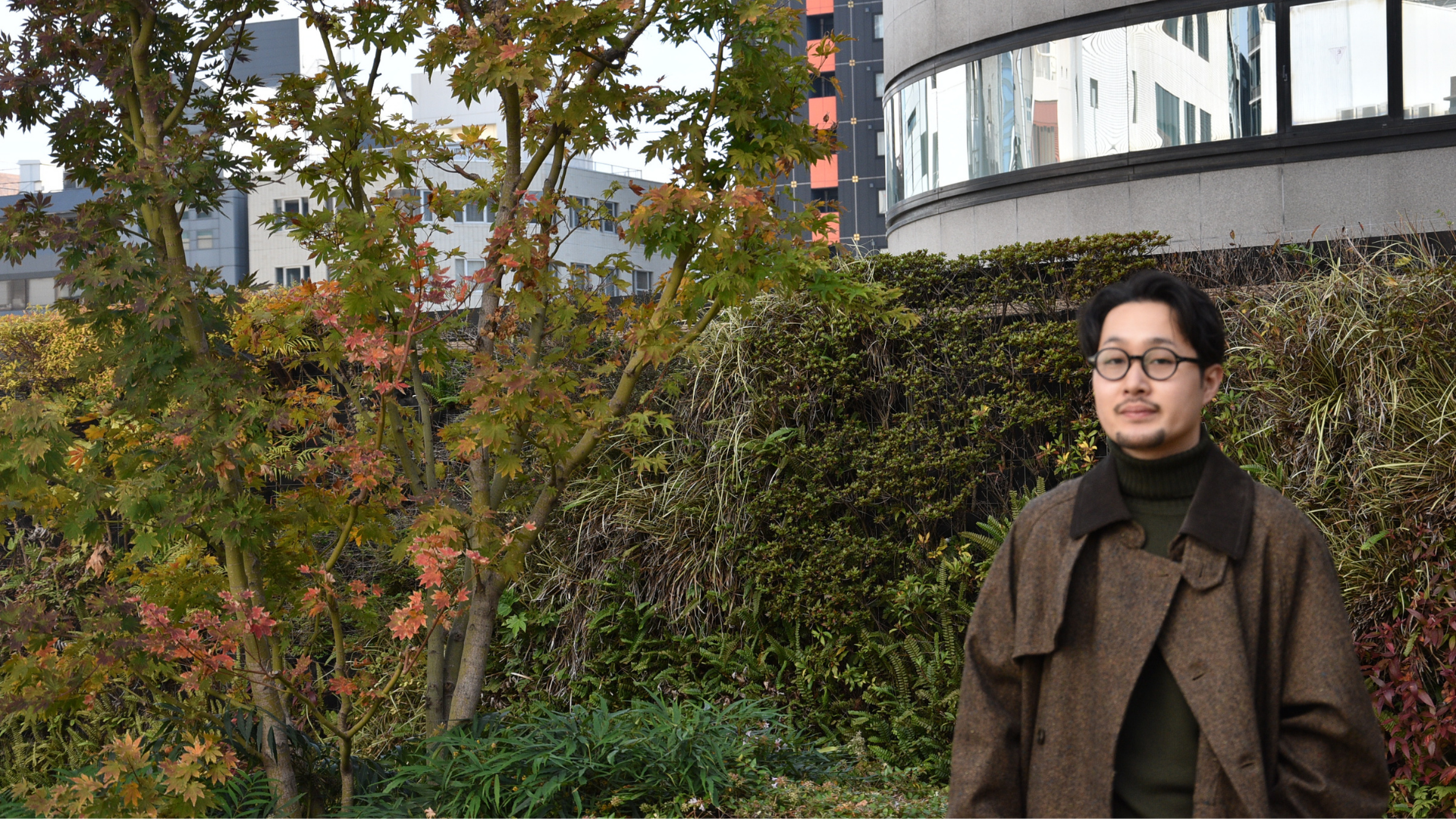 家族と公園、というイベントなのに、岡安が着ているのは何と膝下まで伸びたロングコート。モダンで洗練されながらも大人の余裕を感じさせるシルエットが目を引く。そう、ts(s)のラグラントレンチコートだ。