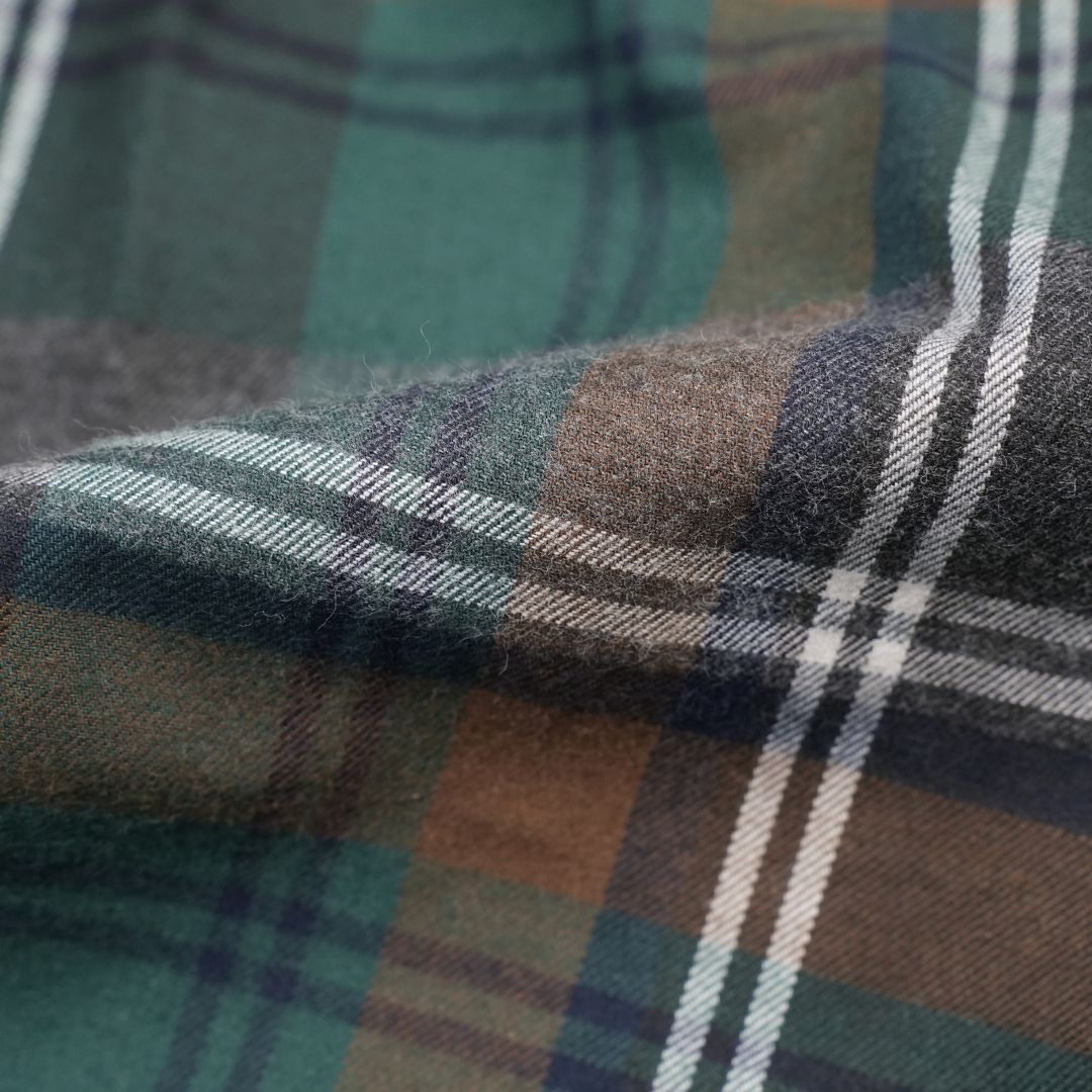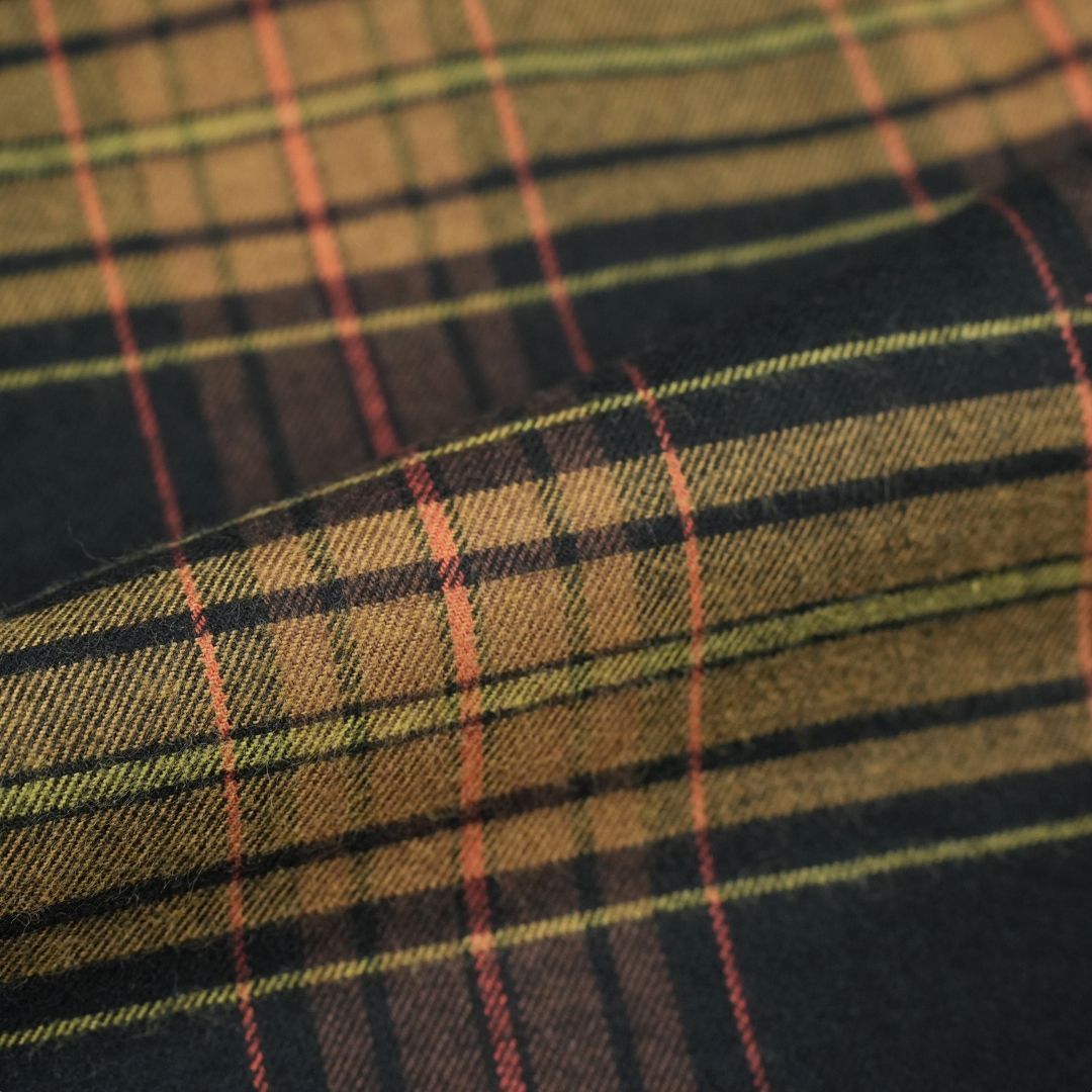 あくまで必要最小限にとどめられた起毛感は柄行がぼやけることが無いので、通常のネル素材よりもシックな雰囲気を漂わせます。