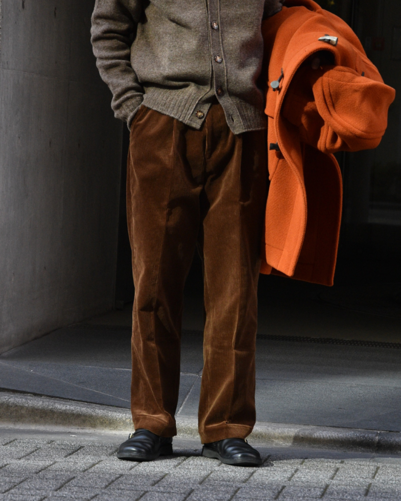 太めのトラウザーに乗っかる感じもステキ!別注ギャンバートのコーデュロイが特に相性が良いと思っています。