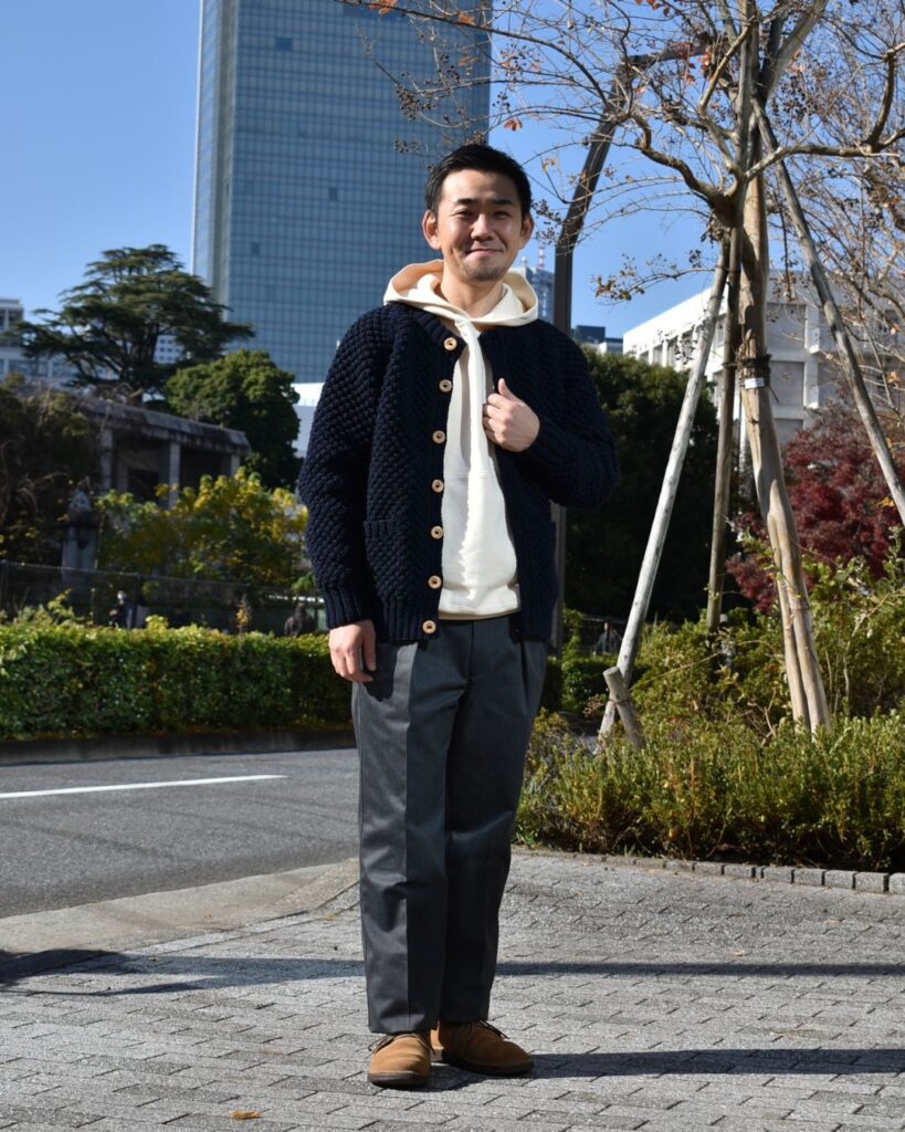 「オン(仕事)ではシャツやジャケットなど少し背筋が伸びる服装をするかと思いますので、オフ(休日)は肩の力を抜いてリラックス。