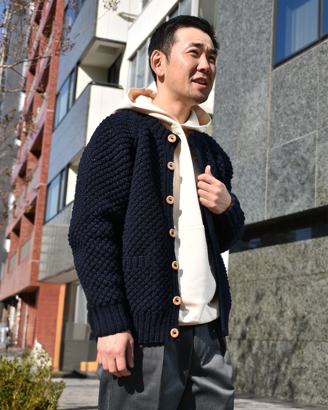 オリーブ・ネイビー・グレーの色合わせもベーシックで安心感がございますので、年齢問わず着ていただけるスタイルだと思います。」