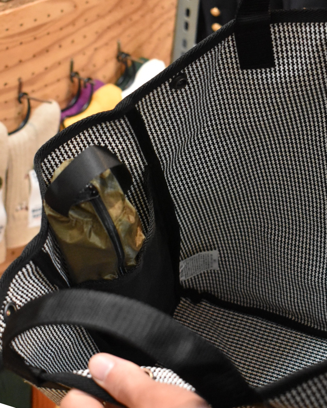 強いて言うなら開口部にスナップボタンが付いているので荷物も守ってくれて、内側の両サイドにポケットがございます。