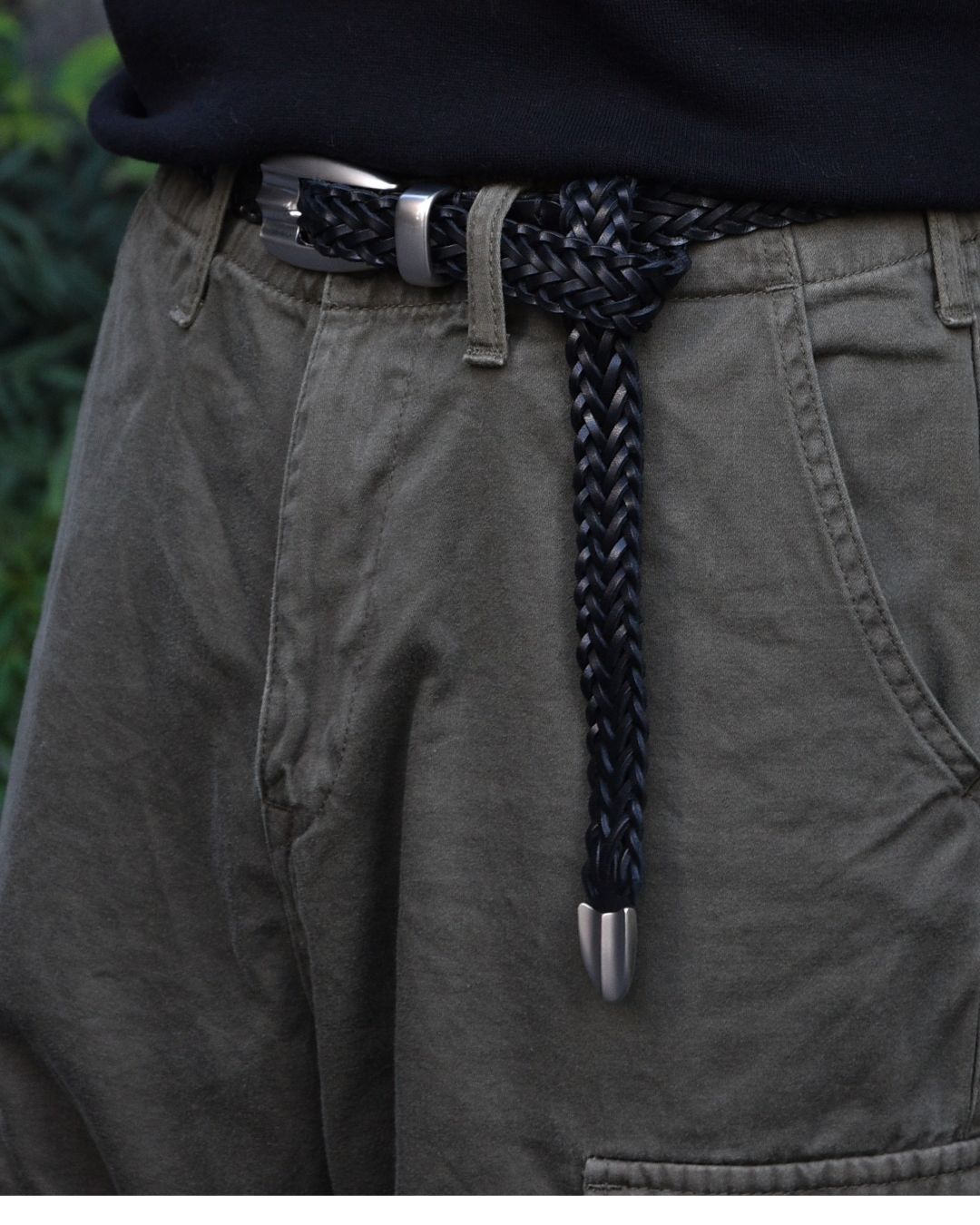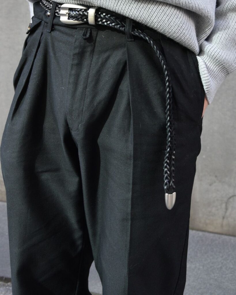 メッシュベルトは同じ素材でもまったく違う表情で、カーゴパンツにも、デニムにも、スラックスにも合う万能さ。