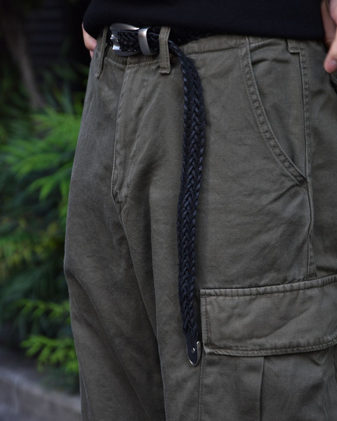 武骨なカーゴにメッシュの細いアクセントが良い抜け感を作ってくれて、ミリタリー系とも相性抜群。