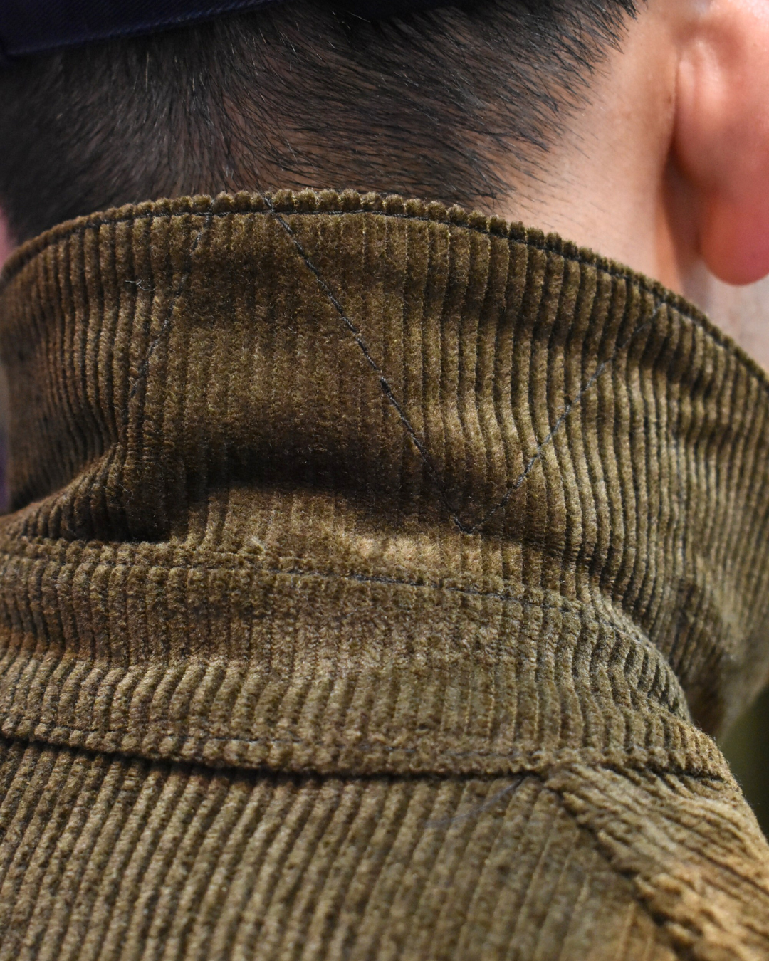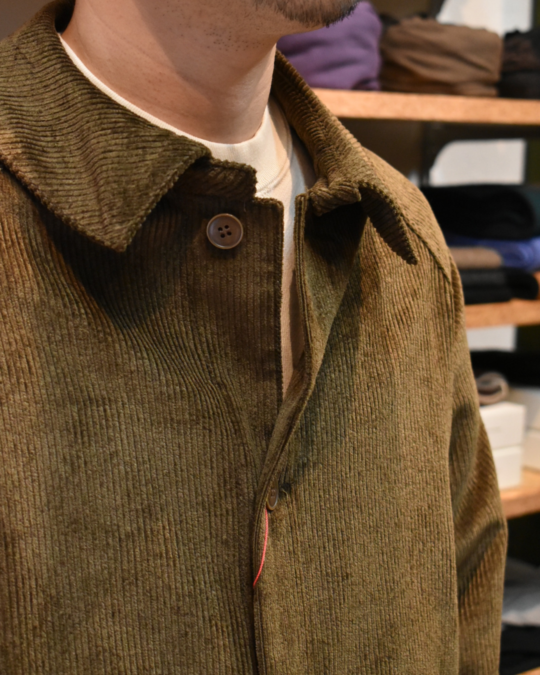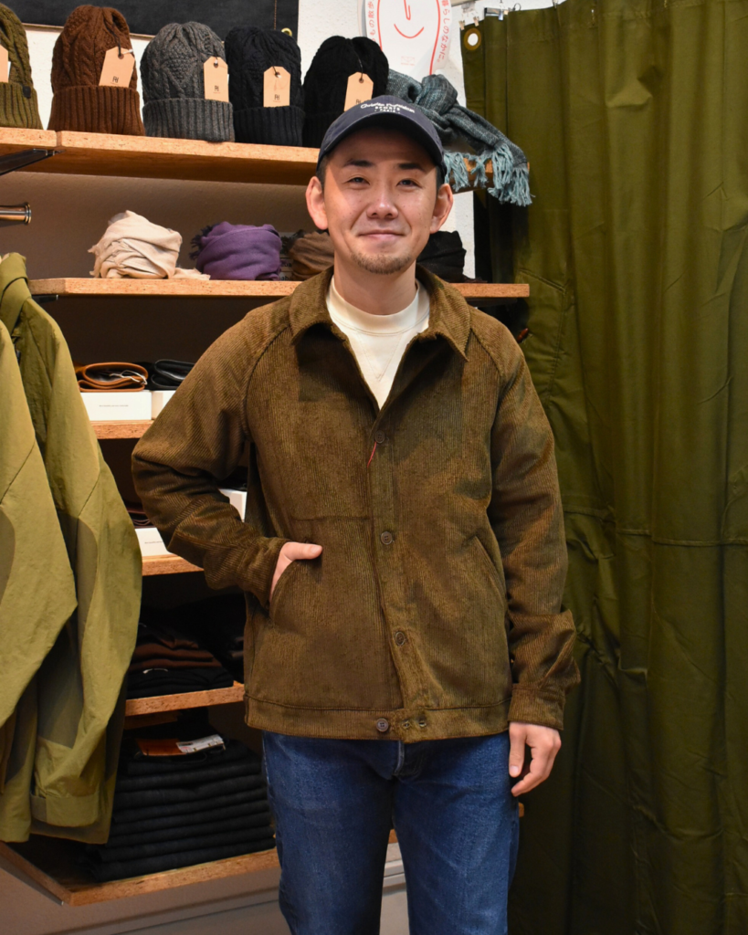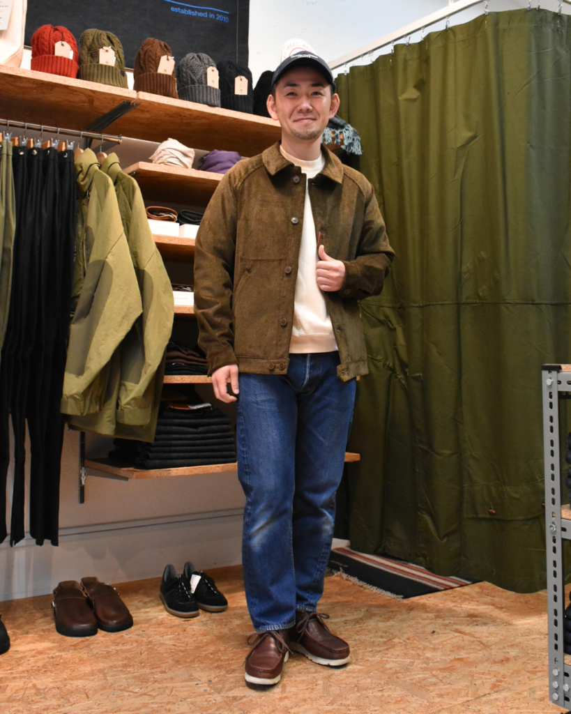 新品時は生地が少し硬いですが、次第に柔らかくコーデュロイ特有の風合いもお楽しみいただけます。見る角度や見え方によって陰影もあるので表情豊かですね。