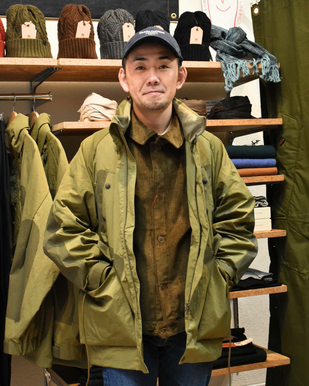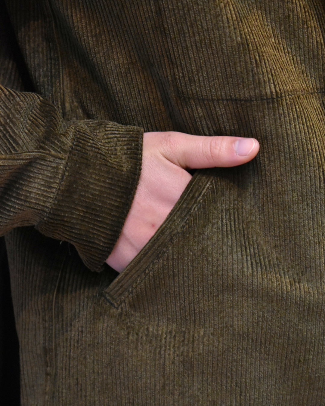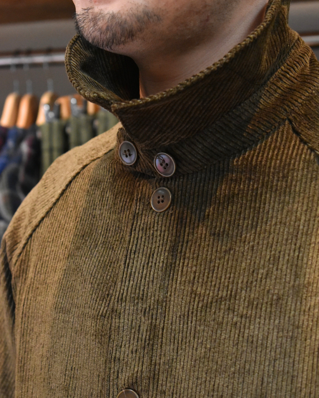 新品時は生地が少し硬いですが、次第に柔らかくコーデュロイ特有の風合いもお楽しみいただけます。見る角度や見え方によって陰影もあるので表情豊かですね。