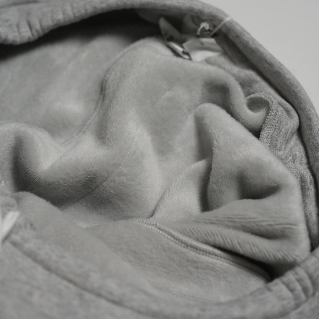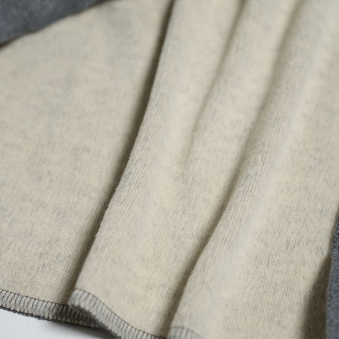 起毛が空気の層を作ることで保温力を高め、まるで毛布を着ているかのような着心地を実現しています。保温性に対してそこまで厚みがある生地ではないので着心地も快適です。