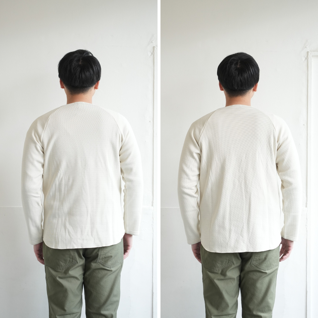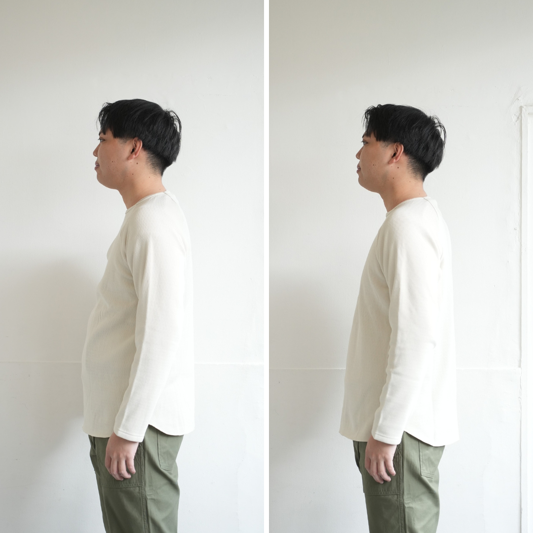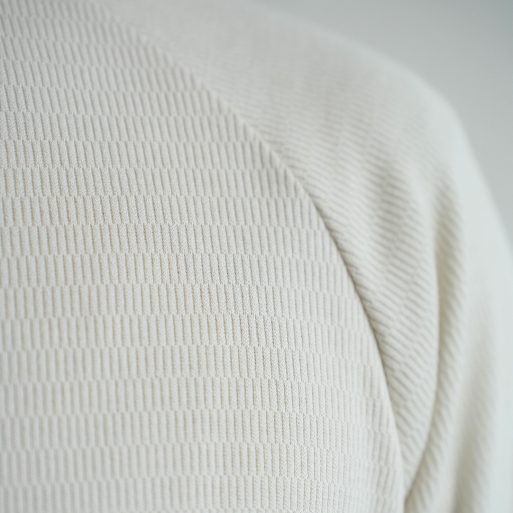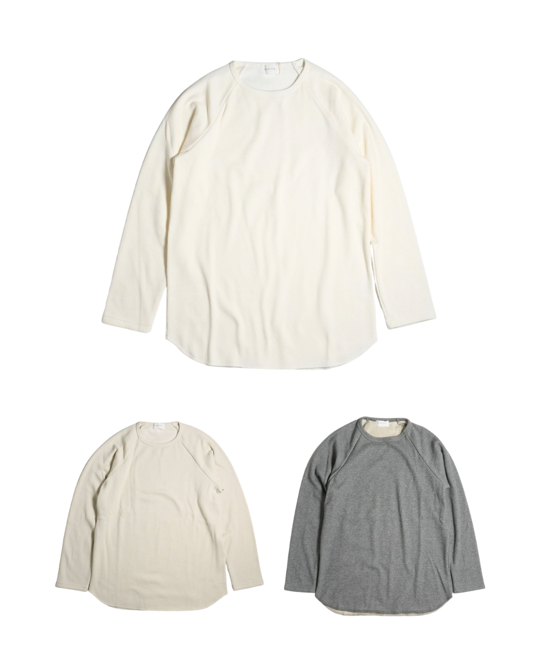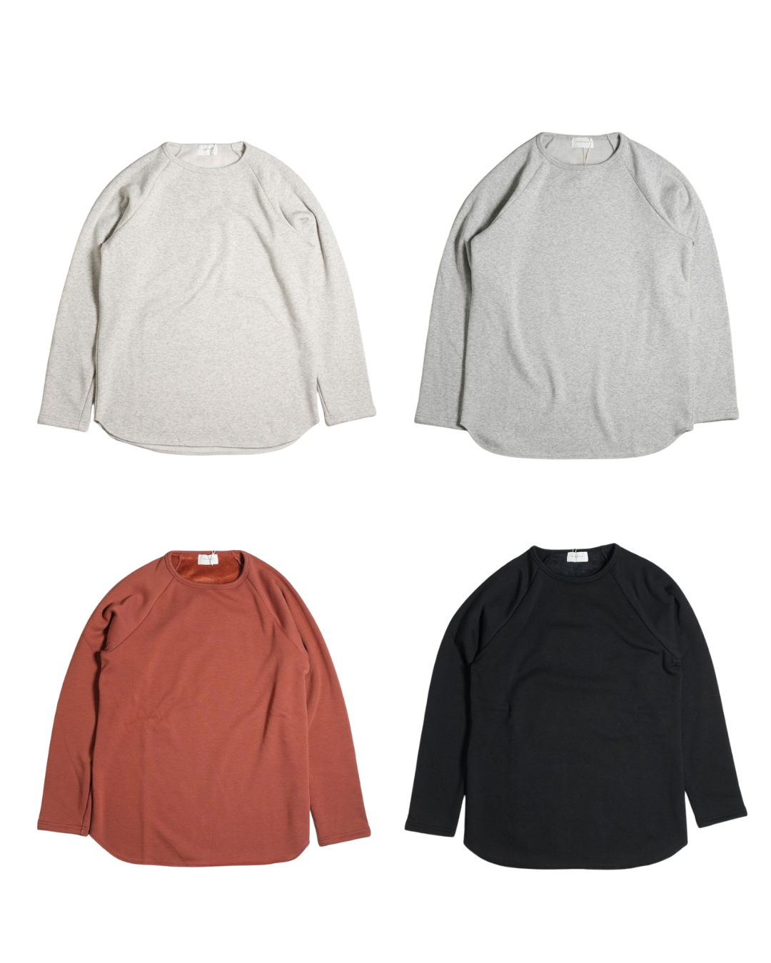 Tシャツとスウェットのあいだのようなボリューム感で、一枚でも着れて、シャツの上などから重ね着も出来る優れものです。