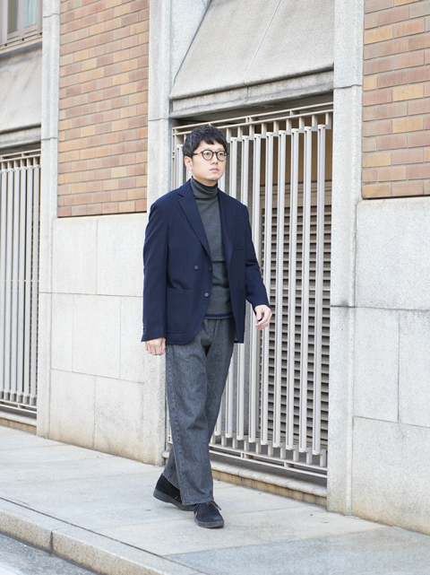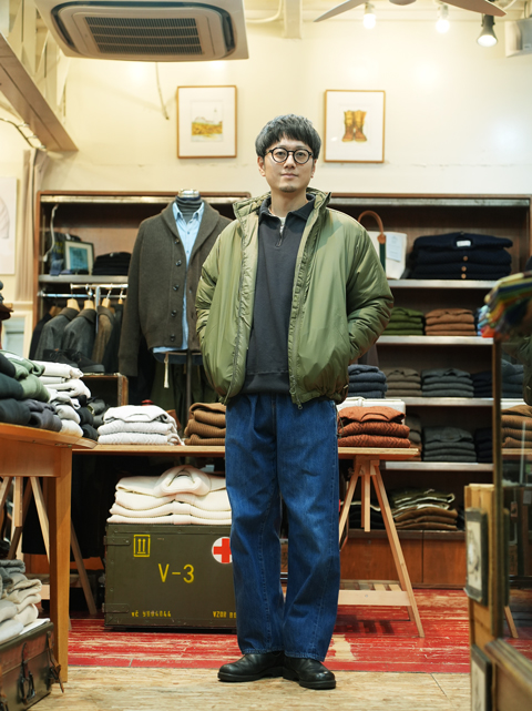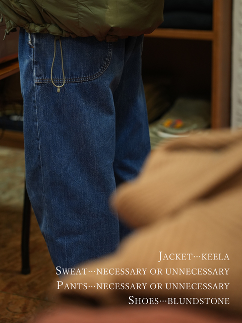 ---経年変化する耳付きデニムと、イージーパンツの組み合わせって珍しいですね。