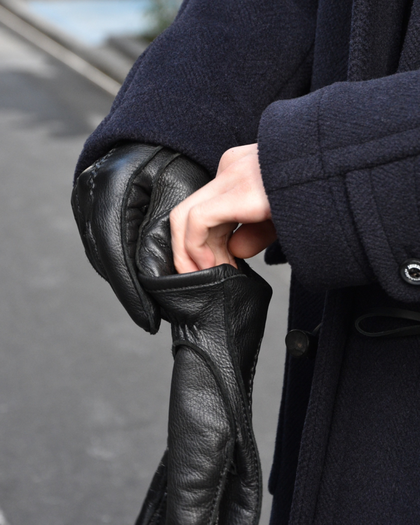 羊革よりも厚みのある鹿革を使っているので、その分だけ暖かいです。